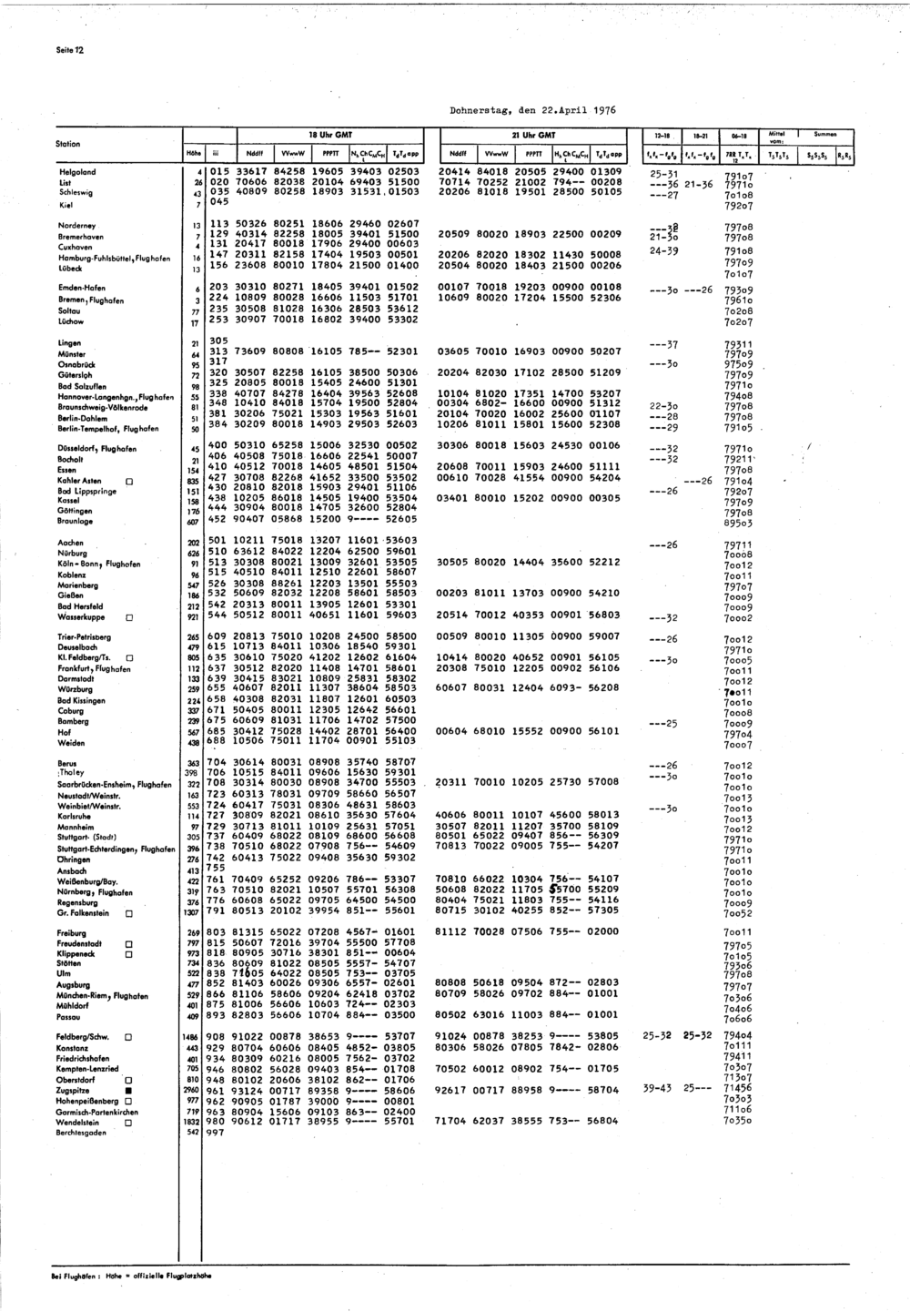 Europäischer Wetterbericht. Beilage 1, Bodenwettermeldungen. 1976-1994