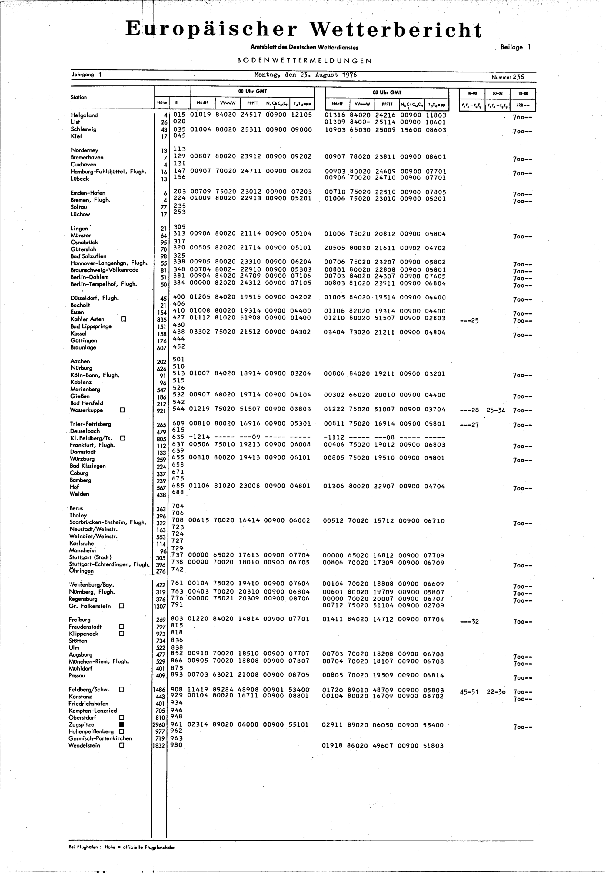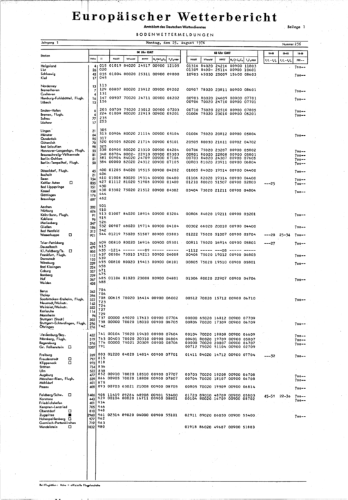 Europäischer Wetterbericht. Beilage 1, Bodenwettermeldungen. 1976-1994
