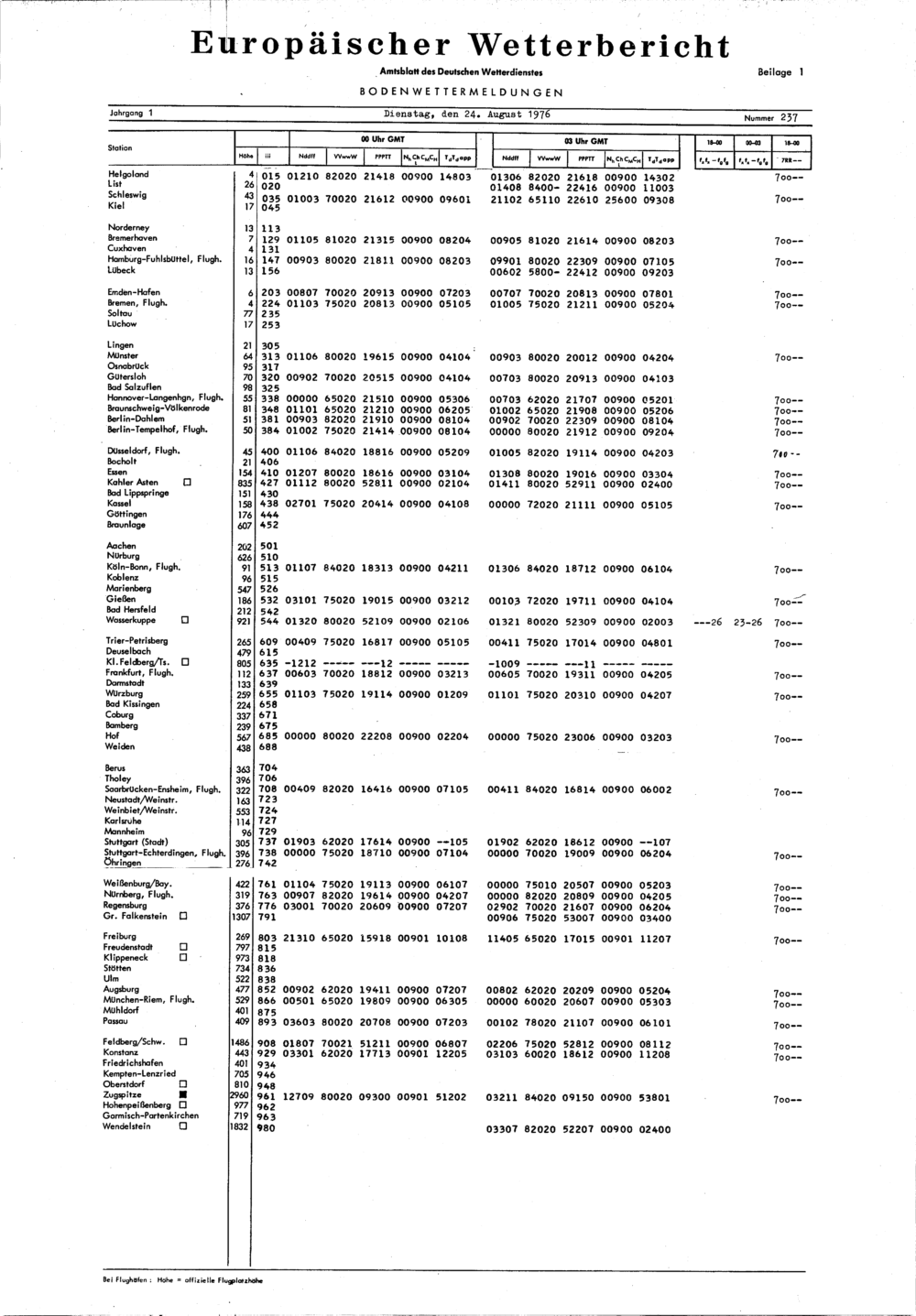 Europäischer Wetterbericht. Beilage 1, Bodenwettermeldungen. 1976-1994