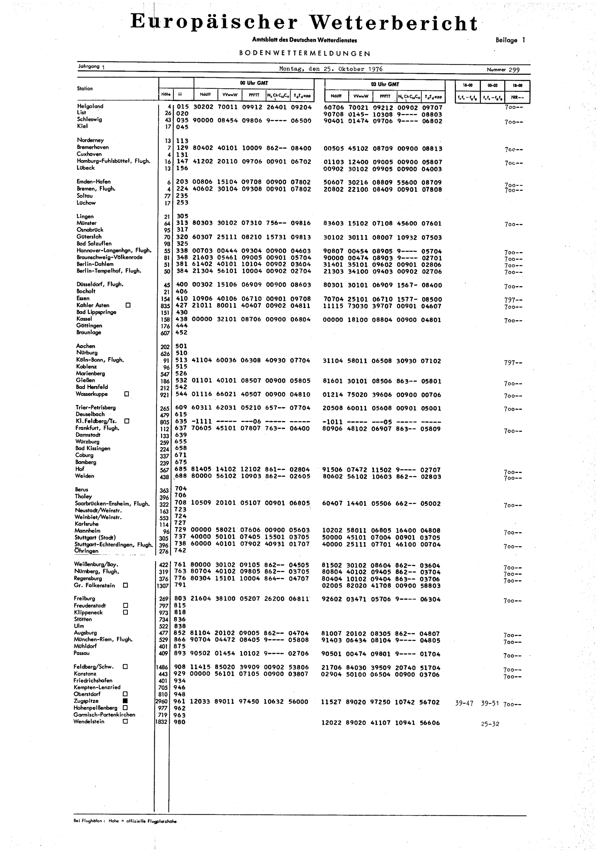 Europäischer Wetterbericht. Beilage 1, Bodenwettermeldungen. 1976-1994