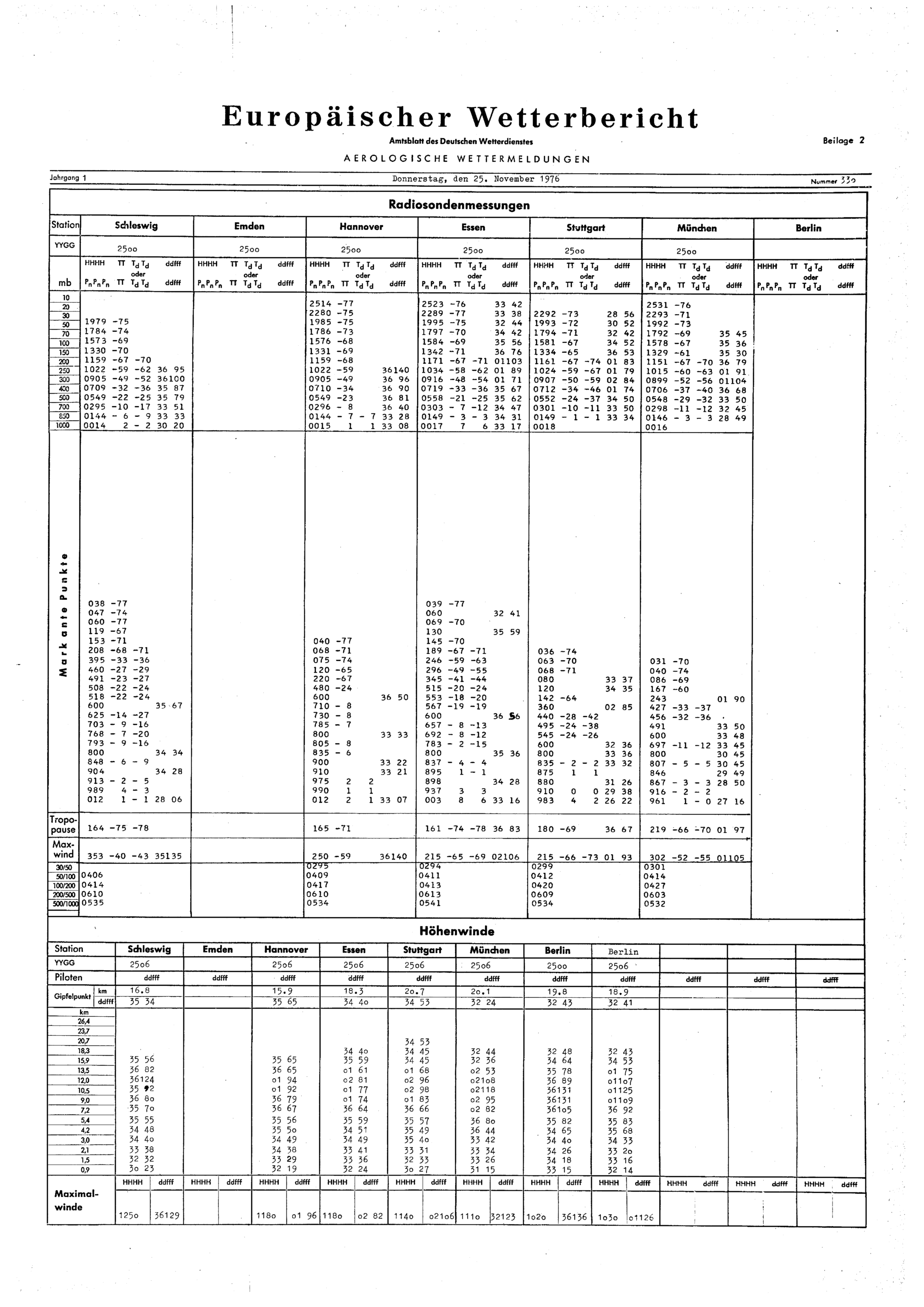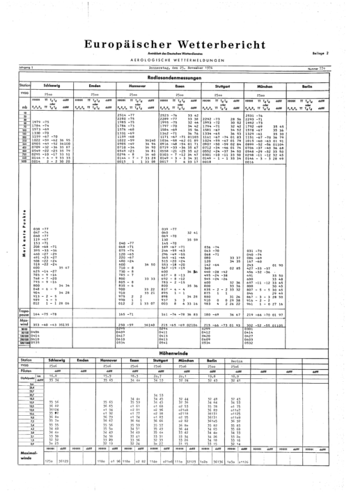Europäischer Wetterbericht. Beilage 1, Bodenwettermeldungen. 1976-1994