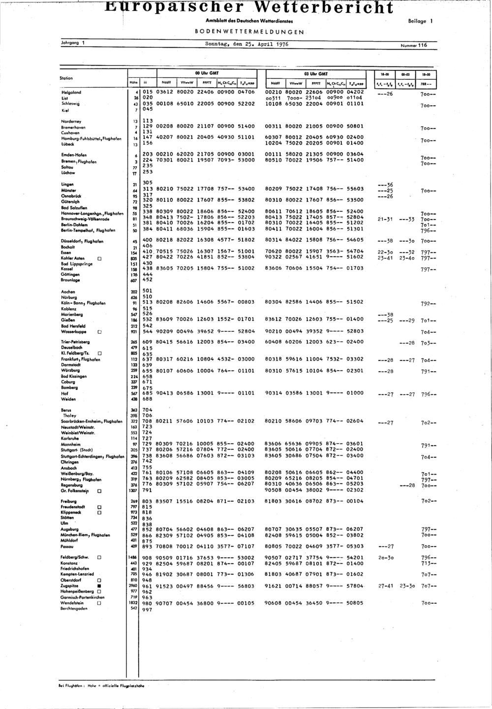Europäischer Wetterbericht. Beilage 1, Bodenwettermeldungen. 1976-1994