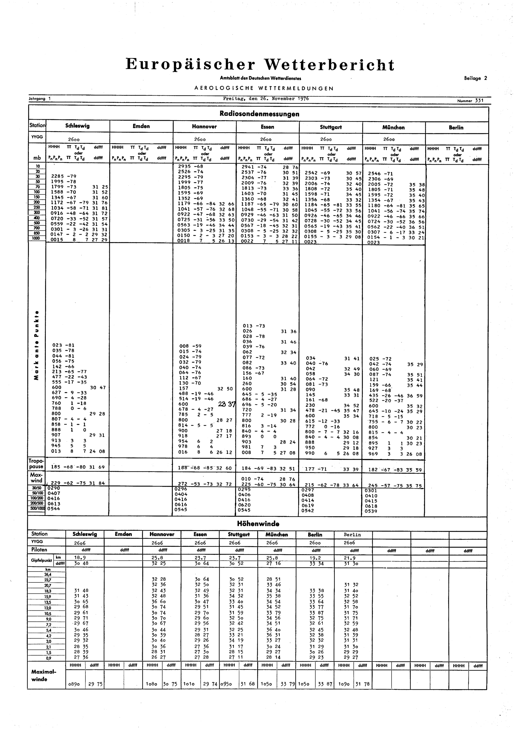Europäischer Wetterbericht. Beilage 1, Bodenwettermeldungen. 1976-1994
