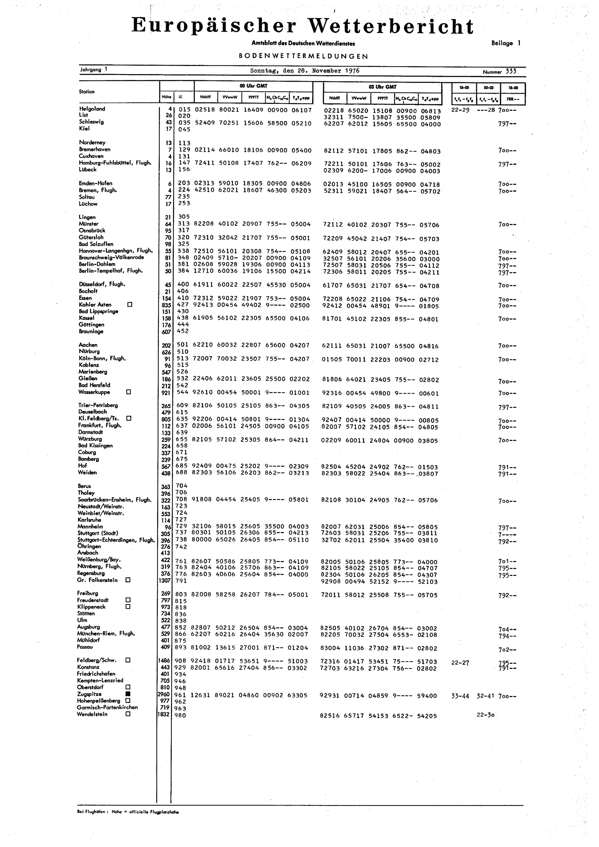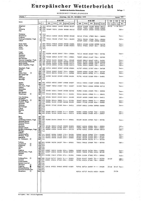 Europäischer Wetterbericht. Beilage 1, Bodenwettermeldungen. 1976-1994