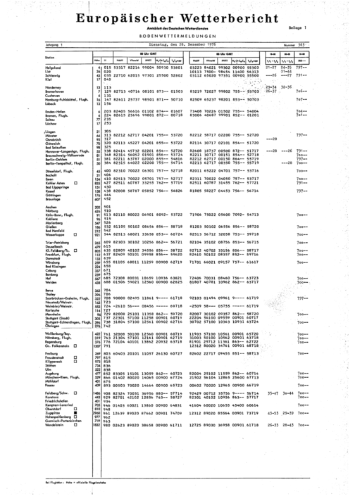 Europäischer Wetterbericht. Beilage 1, Bodenwettermeldungen. 1976-1994