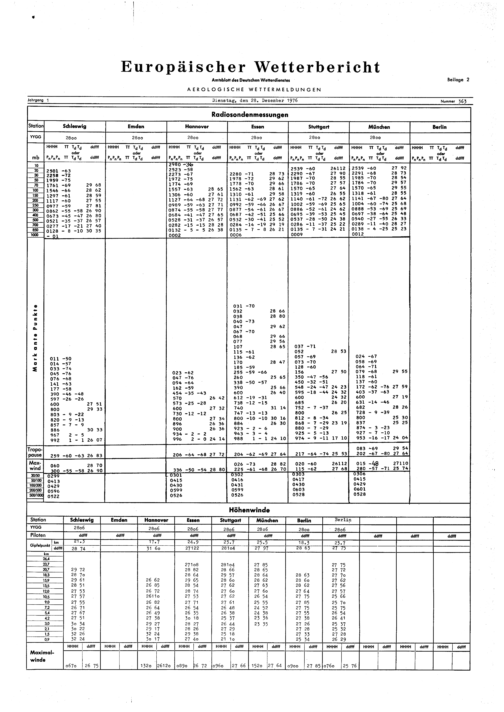 Europäischer Wetterbericht. Beilage 1, Bodenwettermeldungen. 1976-1994
