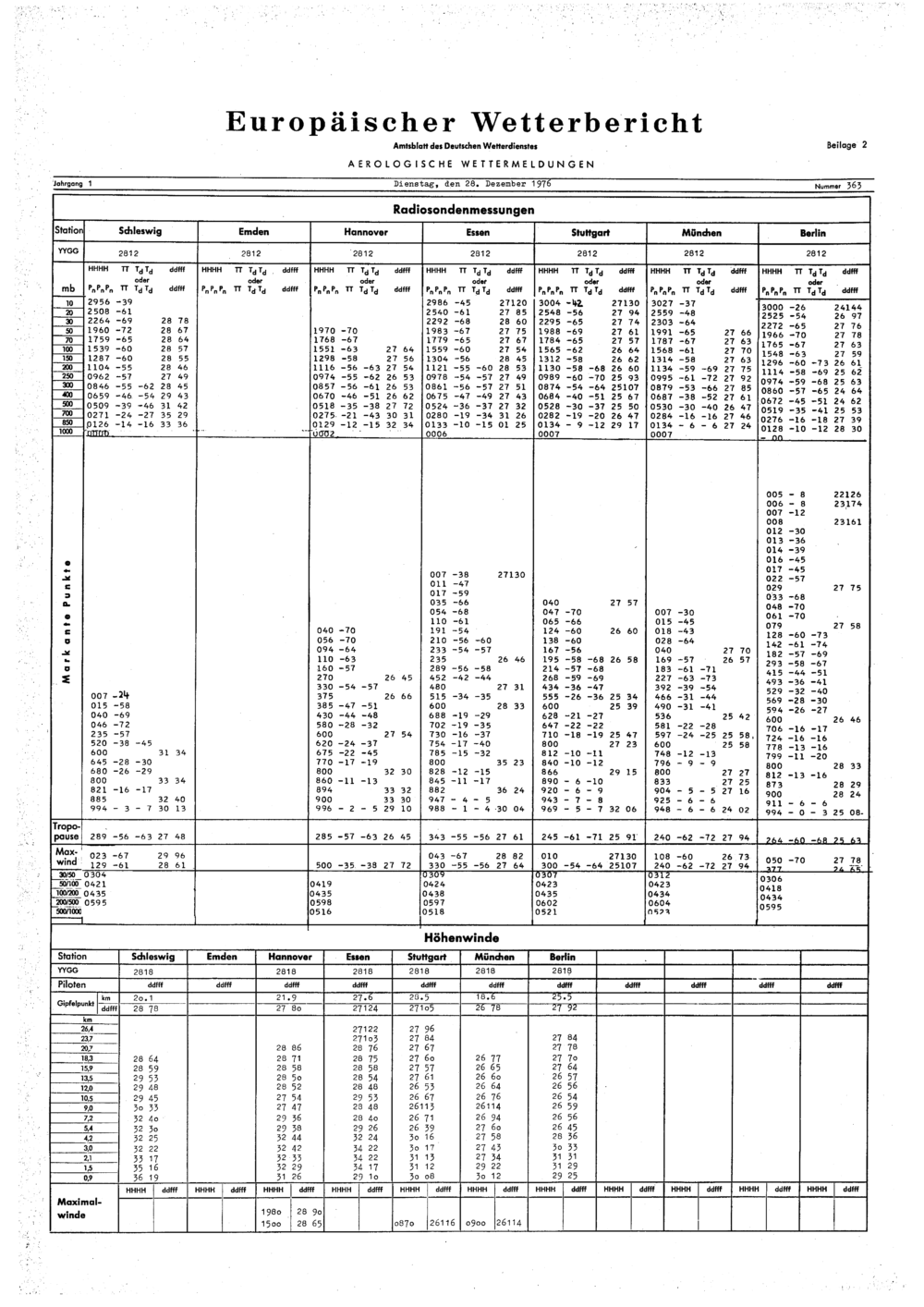 Europäischer Wetterbericht. Beilage 1, Bodenwettermeldungen. 1976-1994