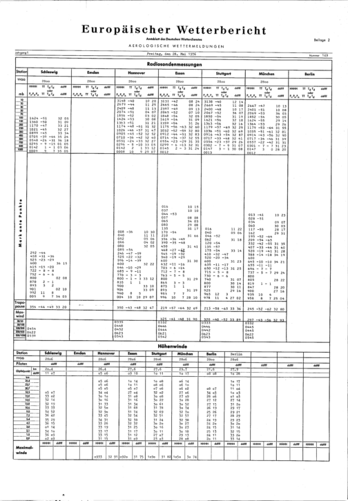 Europäischer Wetterbericht. Beilage 2, Aerologische Wettermeldungen. 1976-1994