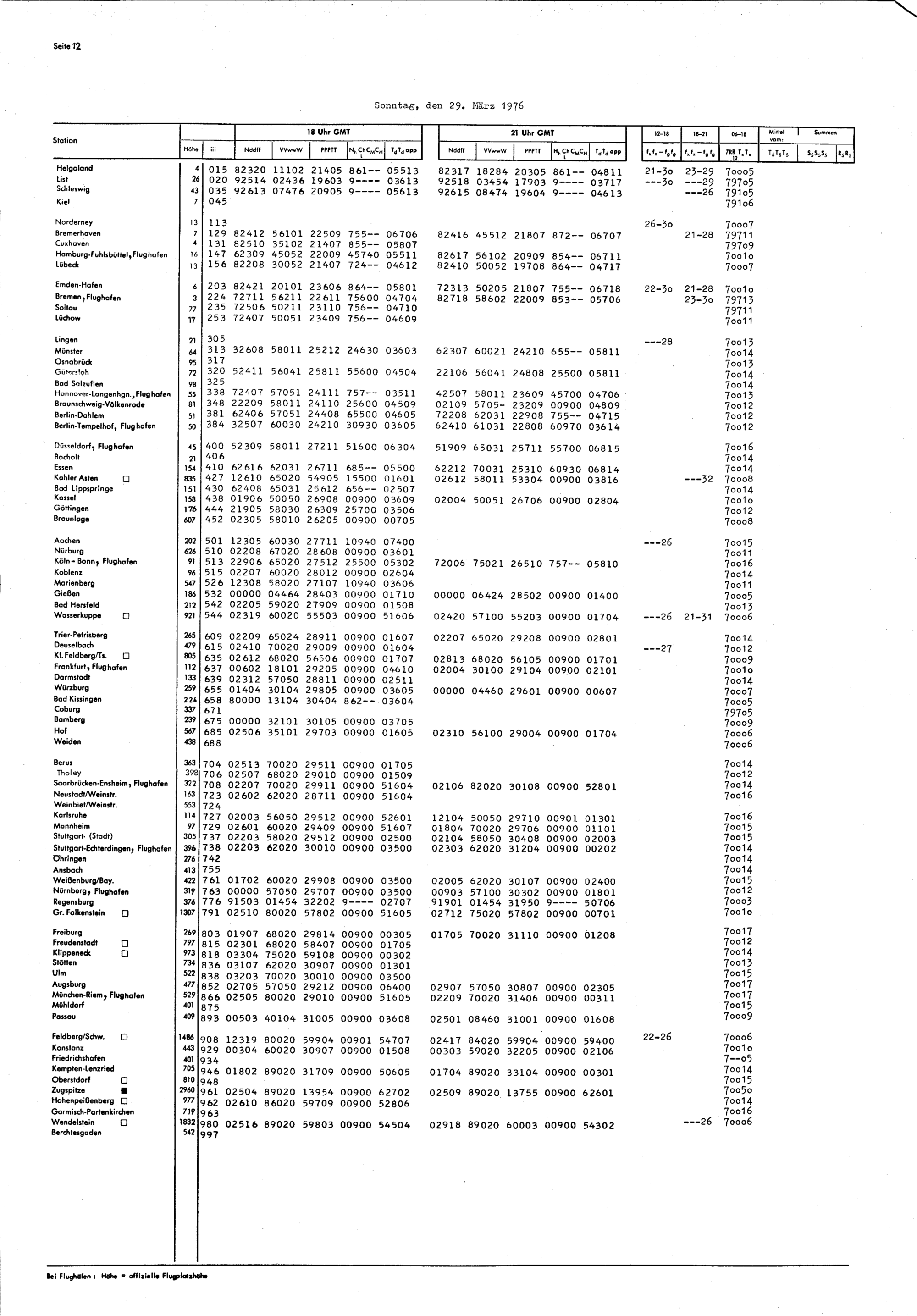 Europäischer Wetterbericht. Beilage 1, Bodenwettermeldungen. 1976-1994