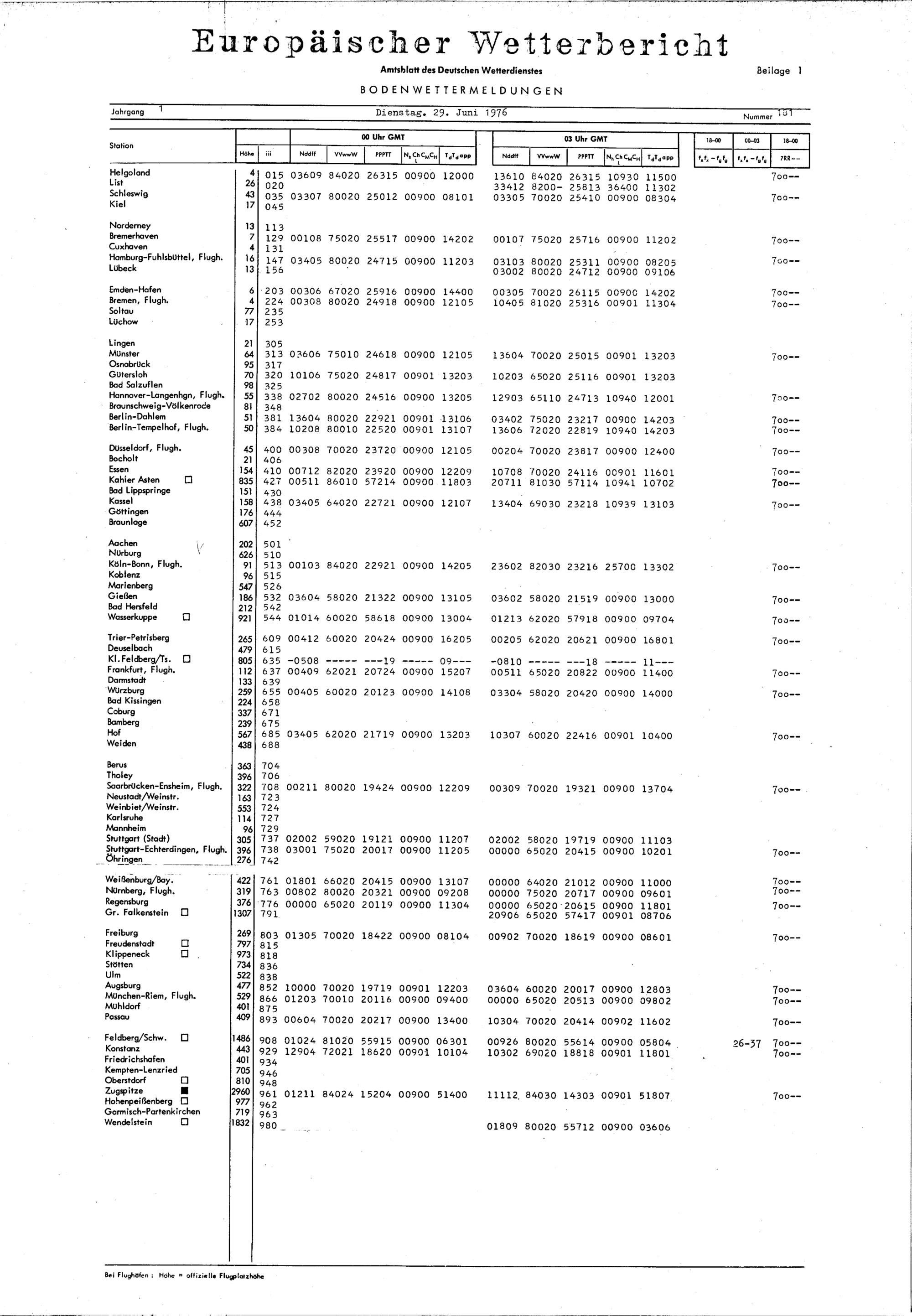 Europäischer Wetterbericht. Beilage 1, Bodenwettermeldungen. 1976-1994