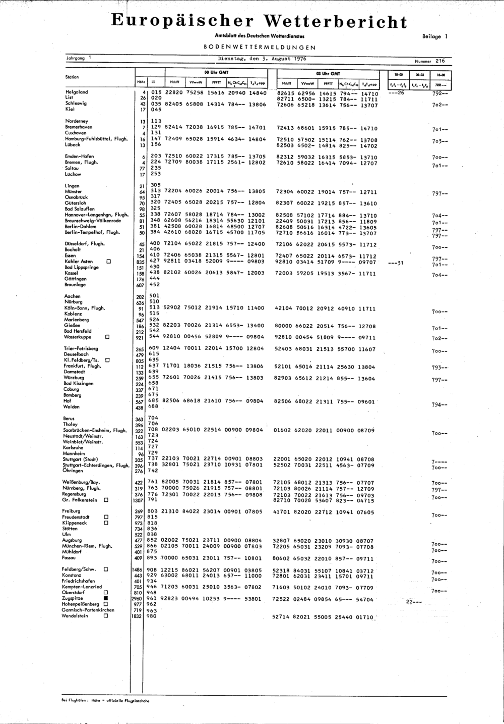Europäischer Wetterbericht. Beilage 1, Bodenwettermeldungen. 1976-1994