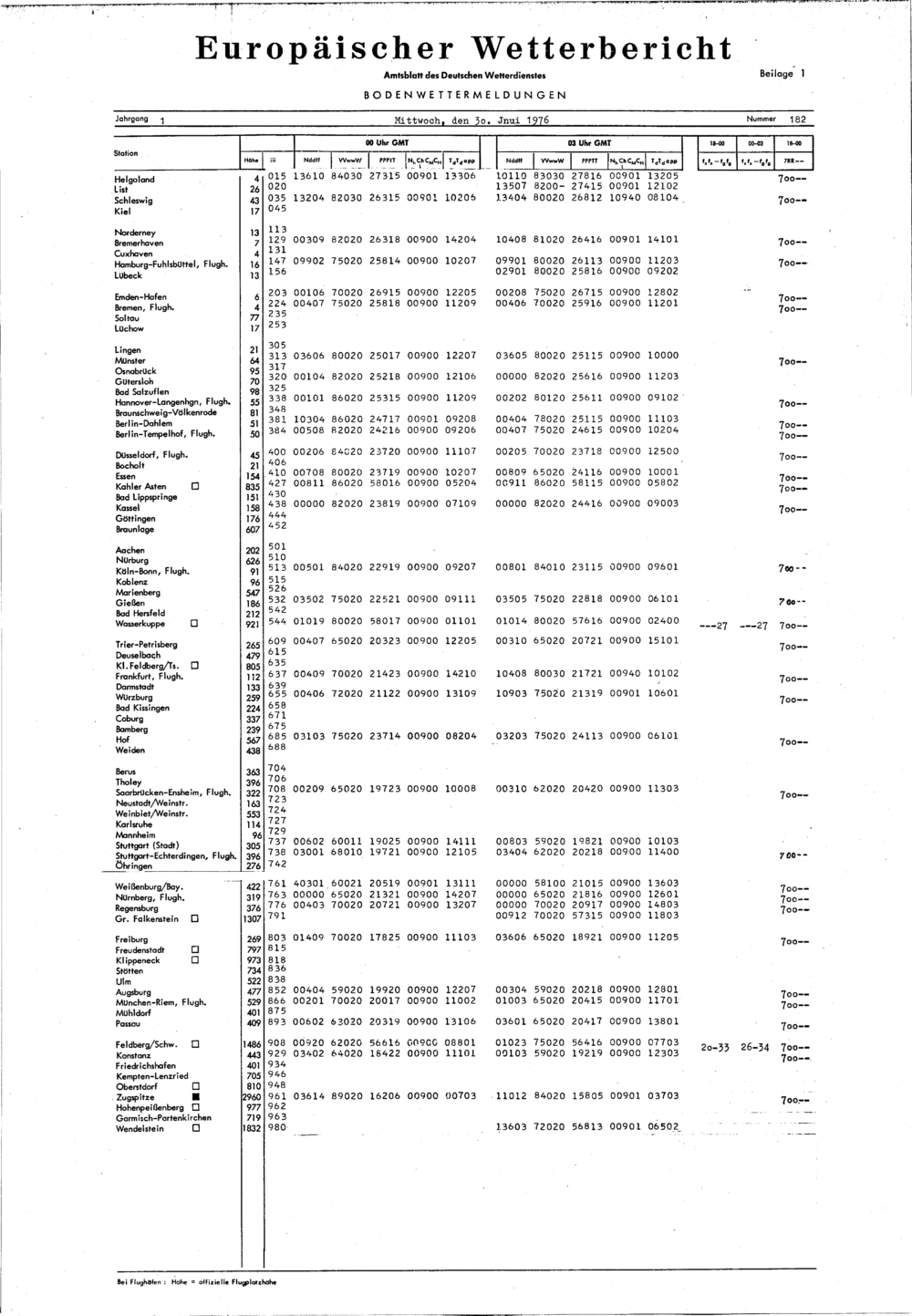 Europäischer Wetterbericht. Beilage 1, Bodenwettermeldungen. 1976-1994