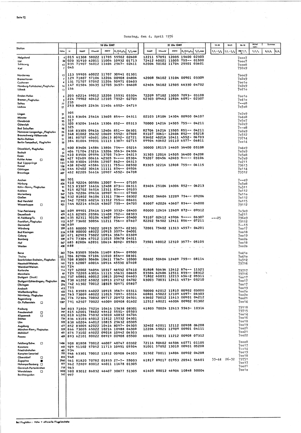 Europäischer Wetterbericht. Beilage 1, Bodenwettermeldungen. 1976-1994