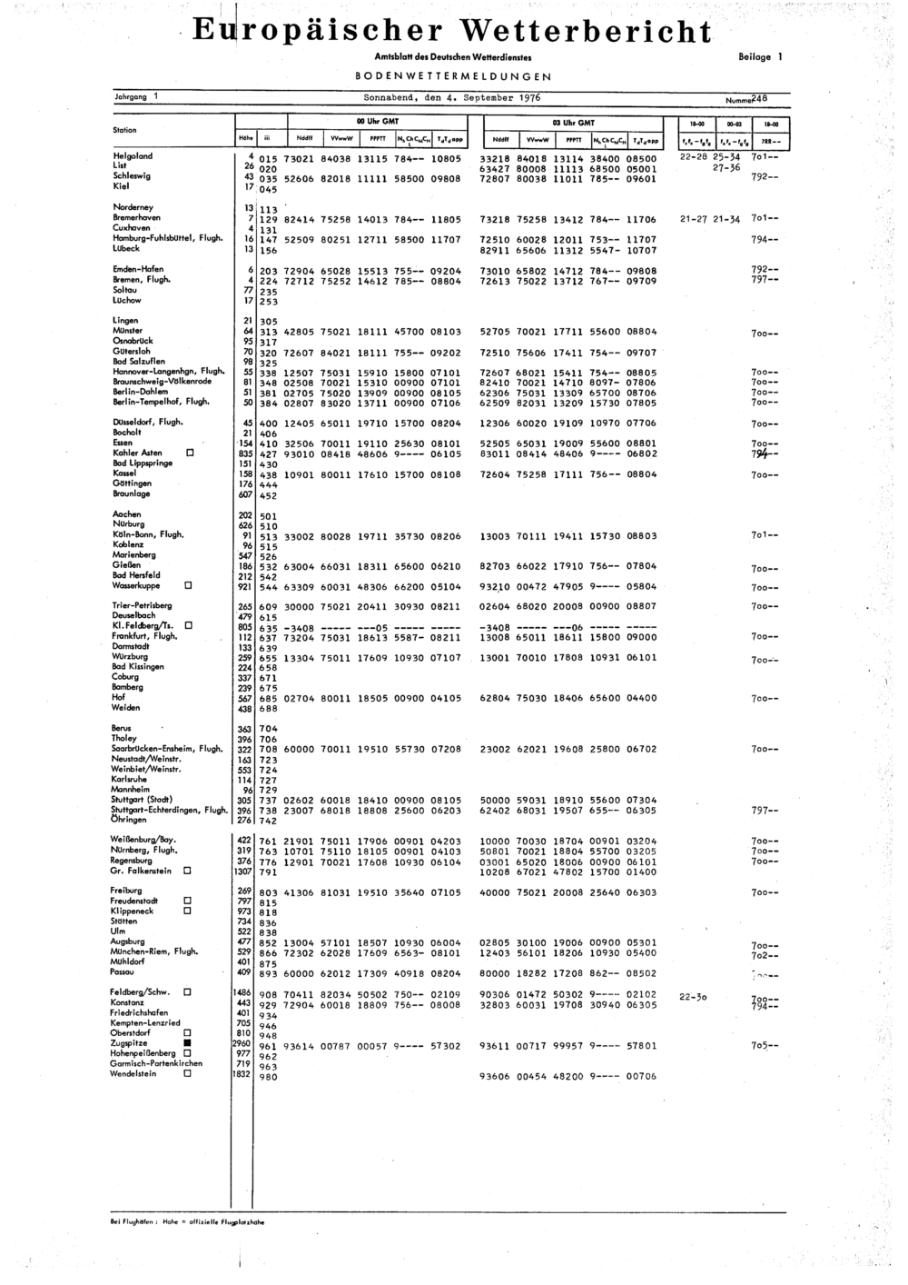Europäischer Wetterbericht. Beilage 1, Bodenwettermeldungen. 1976-1994