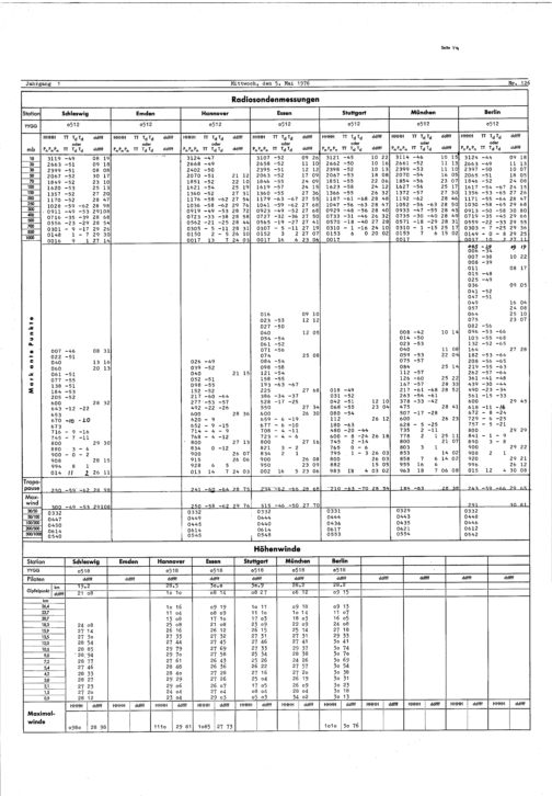 Europäischer Wetterbericht. Beilage 2, Aerologische Wettermeldungen. 1976-1994