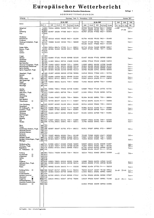 Europäischer Wetterbericht. Beilage 1, Bodenwettermeldungen. 1976-1994