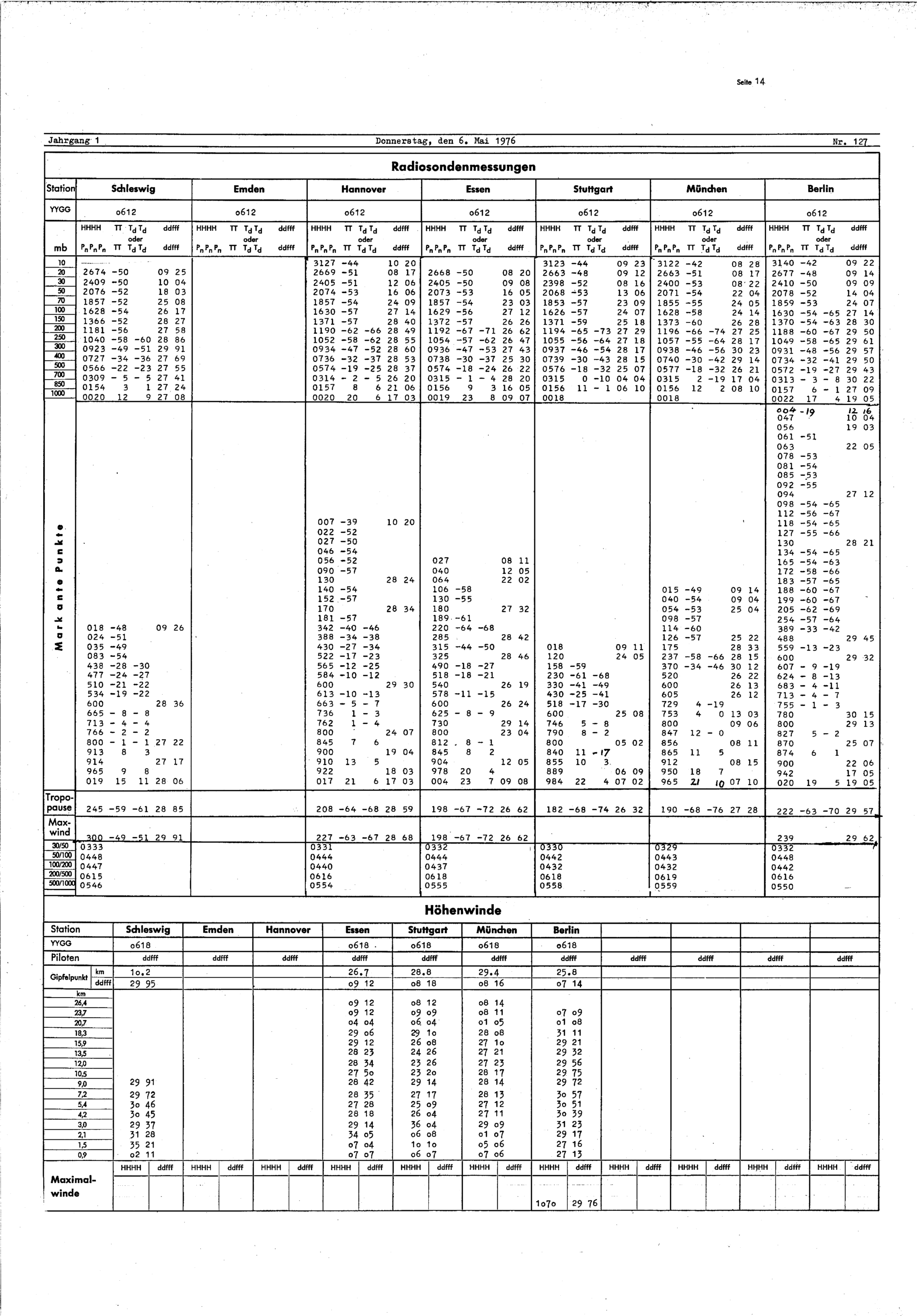 Europäischer Wetterbericht. Beilage 2, Aerologische Wettermeldungen. 1976-1994