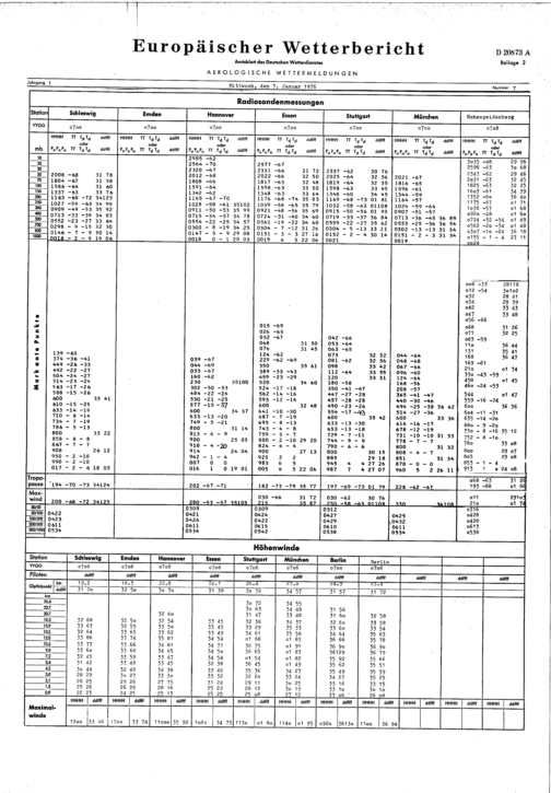 Europäischer Wetterbericht. Beilage 2, Aerologische Wettermeldungen. 1976-1994