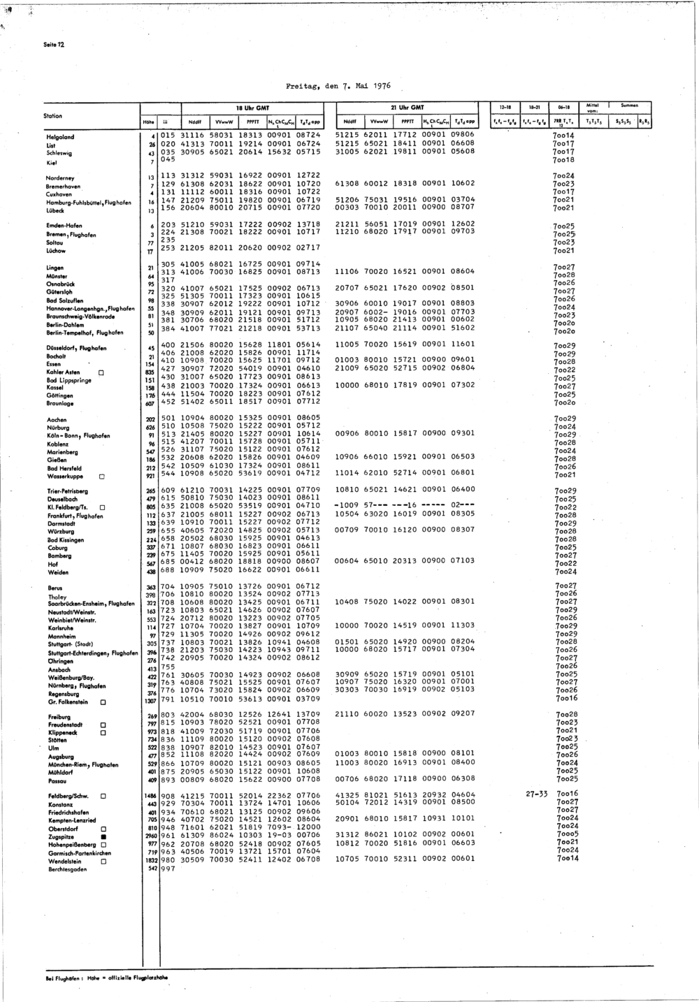Europäischer Wetterbericht. Beilage 1, Bodenwettermeldungen. 1976-1994