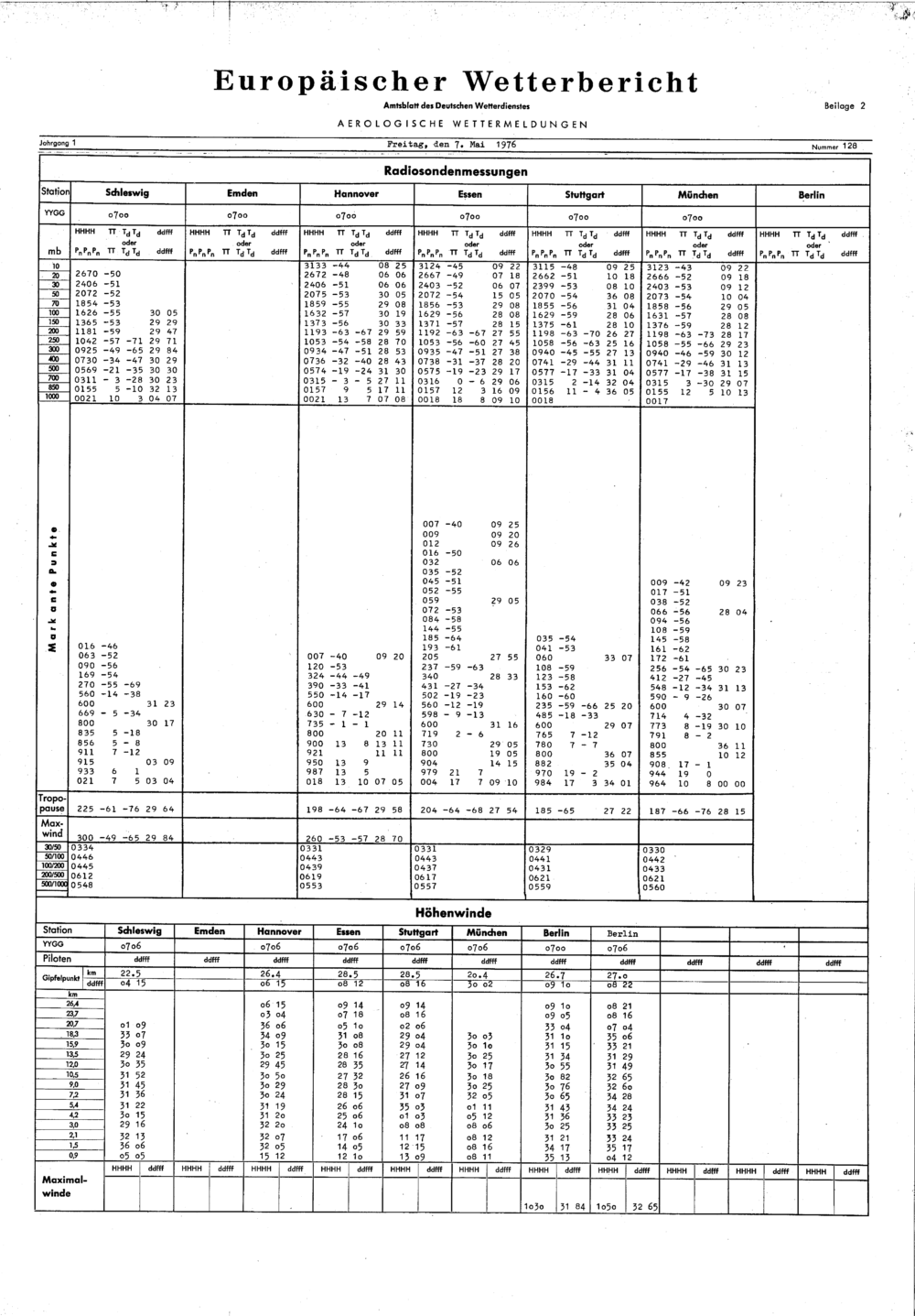 Europäischer Wetterbericht. Beilage 2, Aerologische Wettermeldungen. 1976-1994