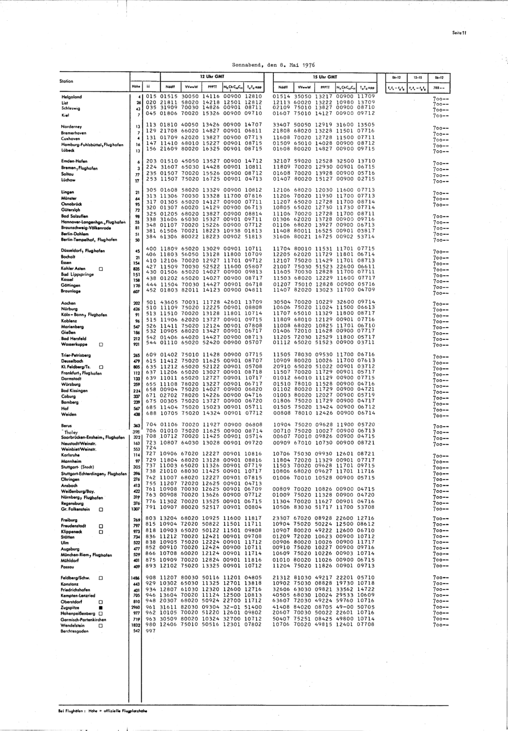 Europäischer Wetterbericht. Beilage 1, Bodenwettermeldungen. 1976-1994
