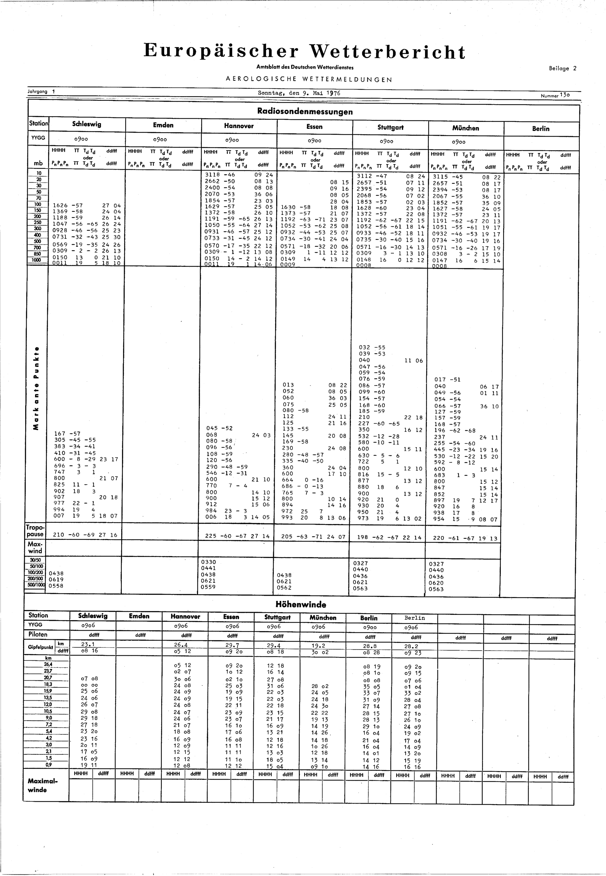 Europäischer Wetterbericht. Beilage 2, Aerologische Wettermeldungen. 1976-1994