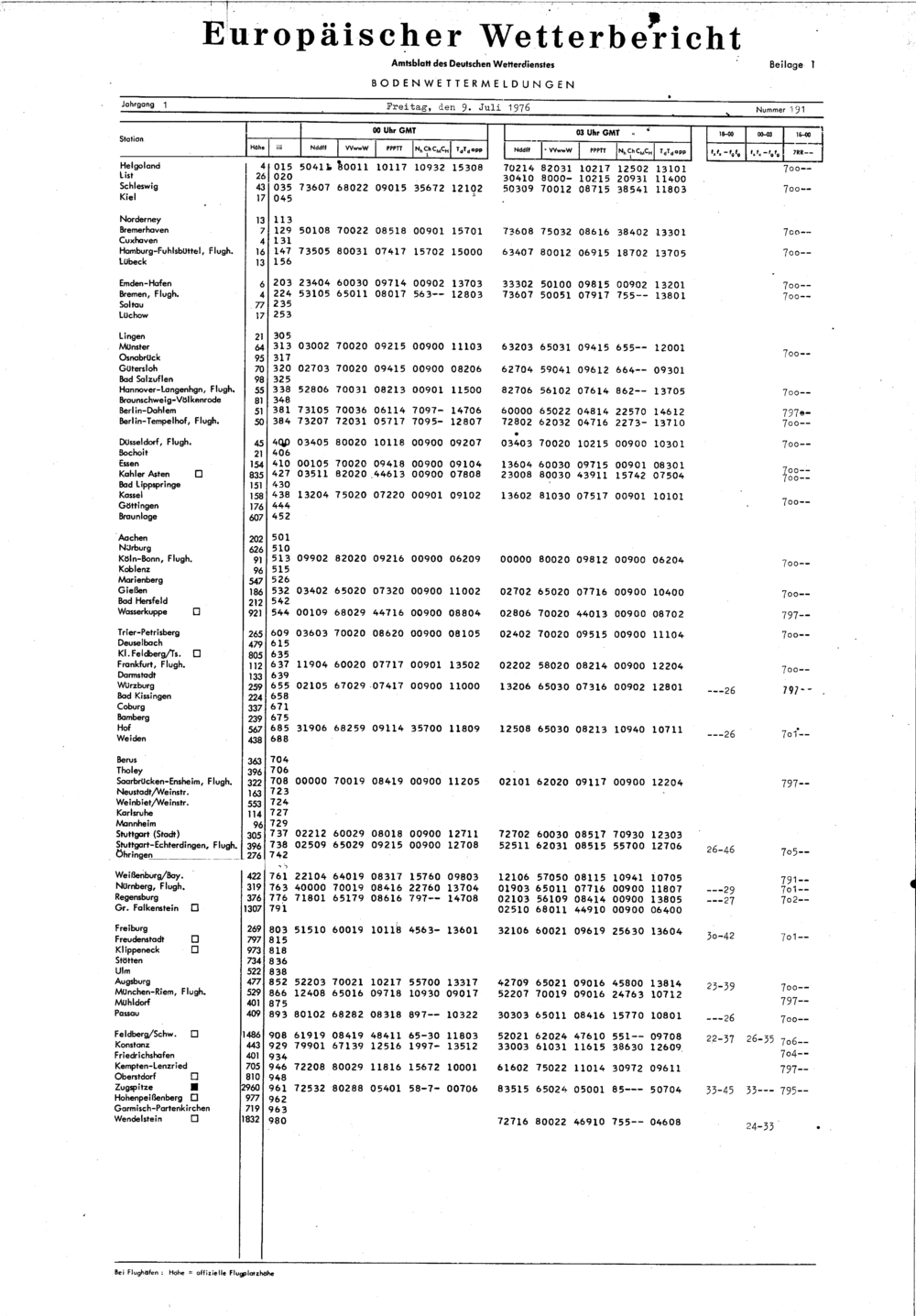 Europäischer Wetterbericht. Beilage 1, Bodenwettermeldungen. 1976-1994