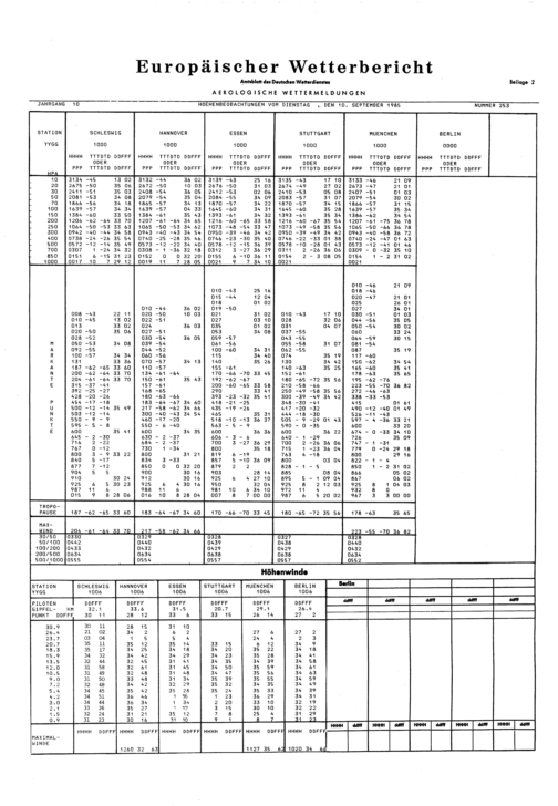 Europäischer Wetterbericht. Beilage 1, Bodenwettermeldungen. 1976-1994