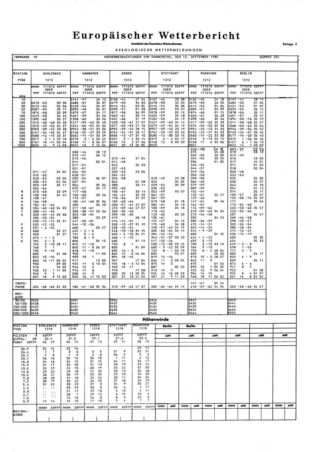 Europäischer Wetterbericht. Beilage 1, Bodenwettermeldungen. 1976-1994