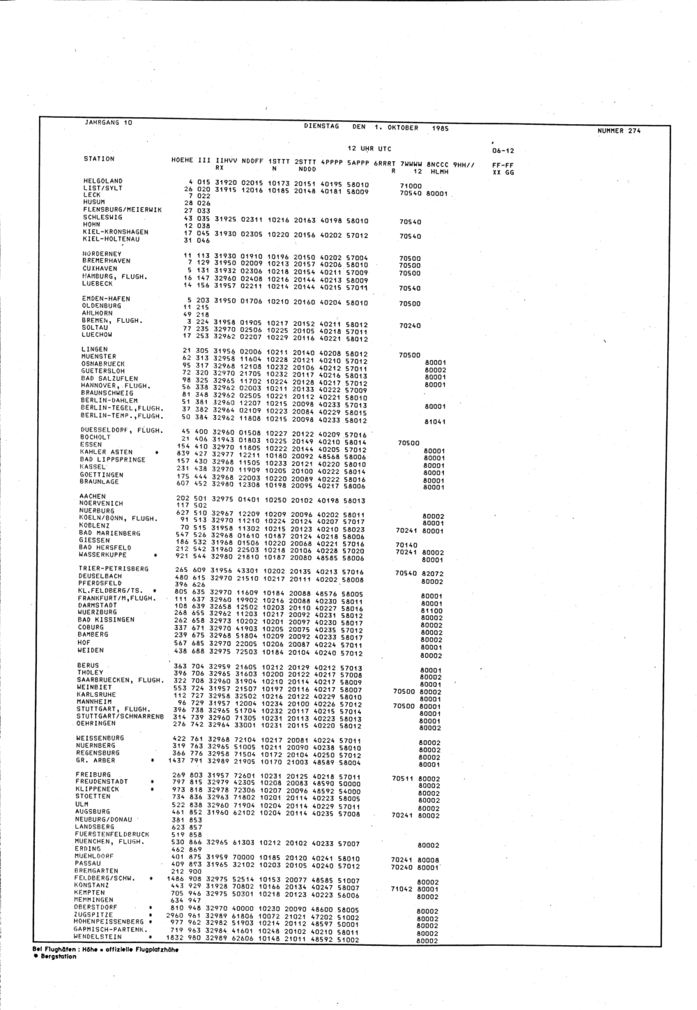 Europäischer Wetterbericht. Beilage 1, Bodenwettermeldungen. 1976-1994