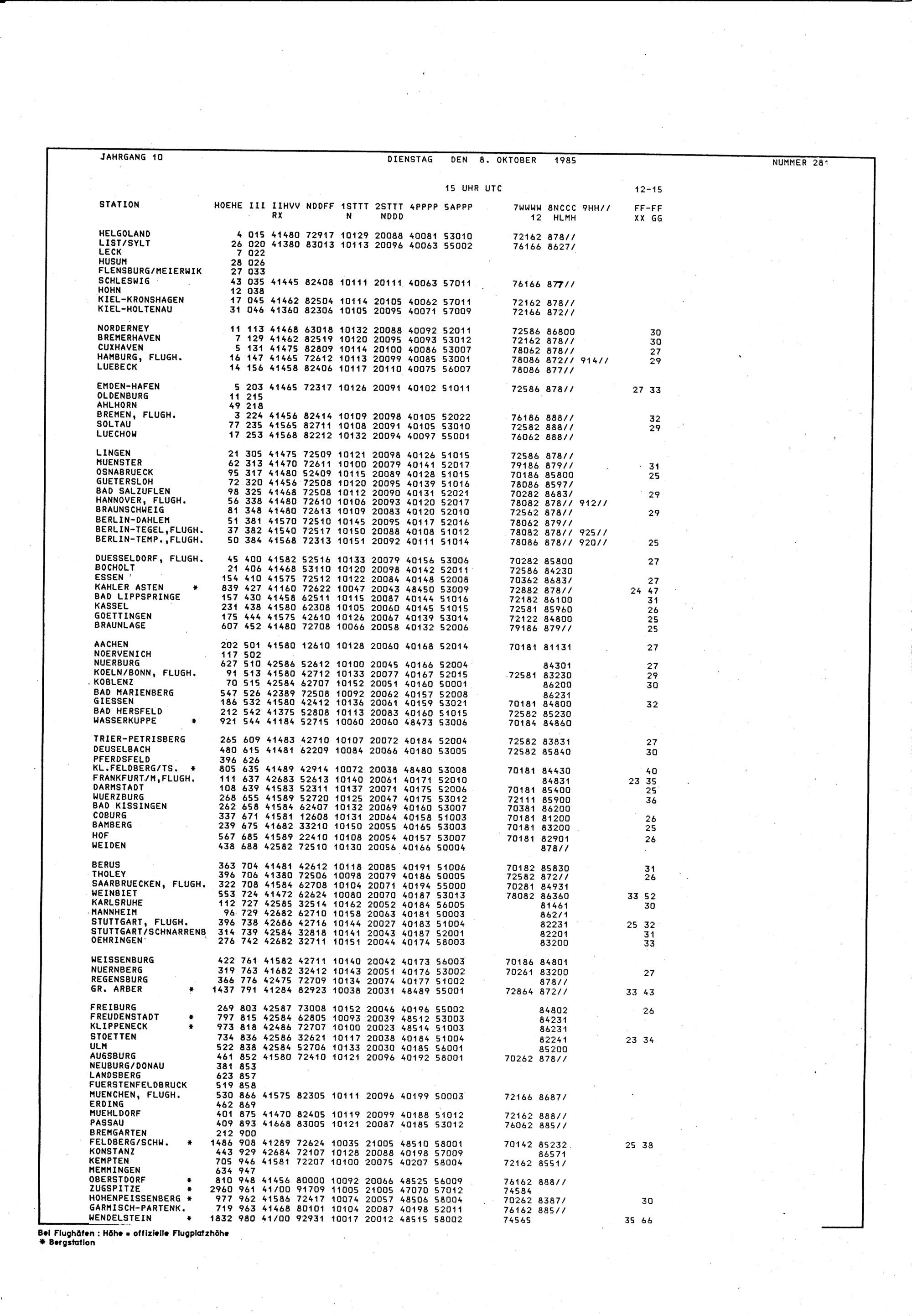 Europäischer Wetterbericht. Beilage 1, Bodenwettermeldungen. 1976-1994