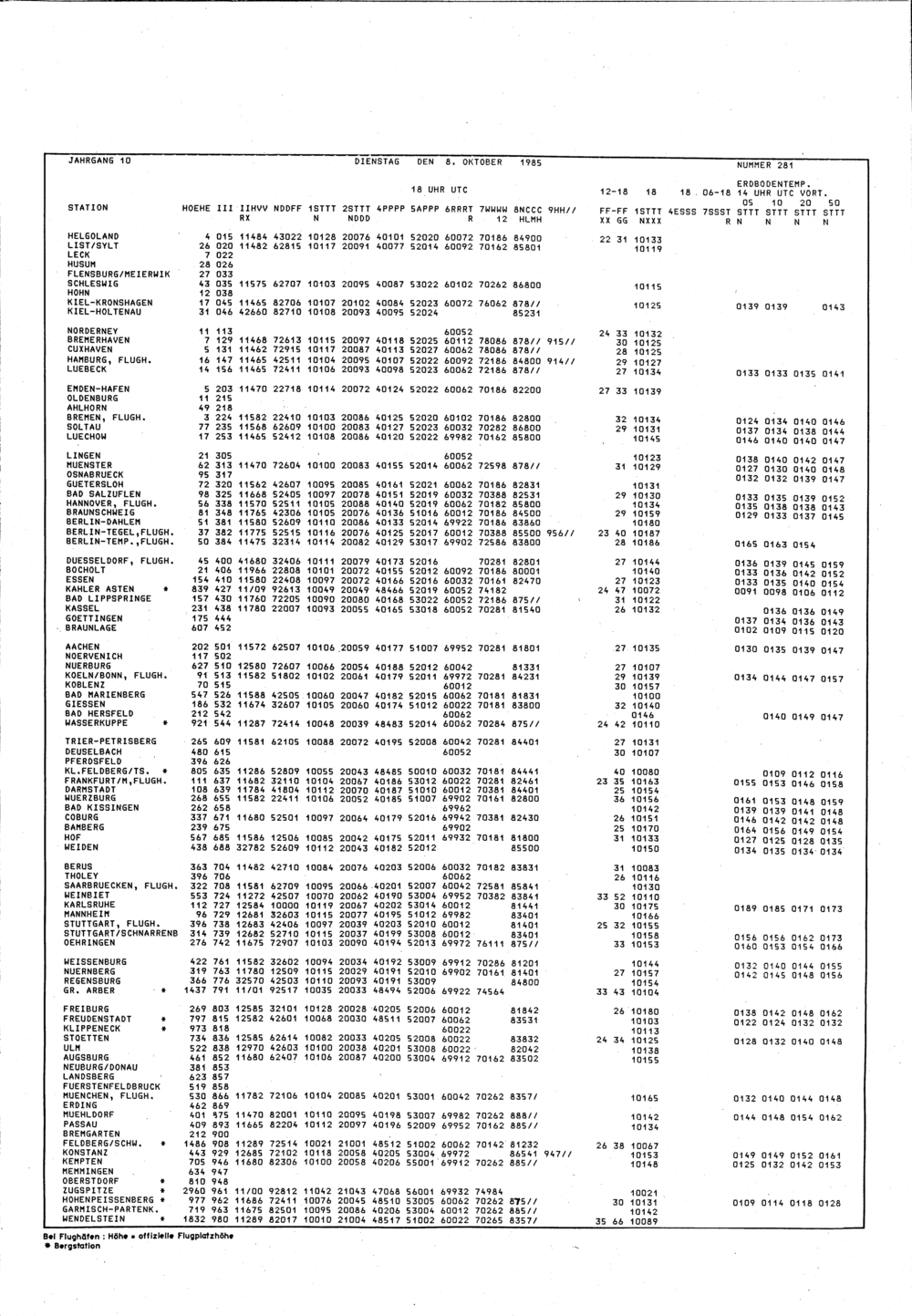 Europäischer Wetterbericht. Beilage 1, Bodenwettermeldungen. 1976-1994