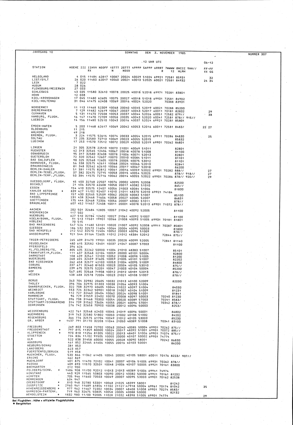 Europäischer Wetterbericht. Beilage 1, Bodenwettermeldungen. 1976-1994