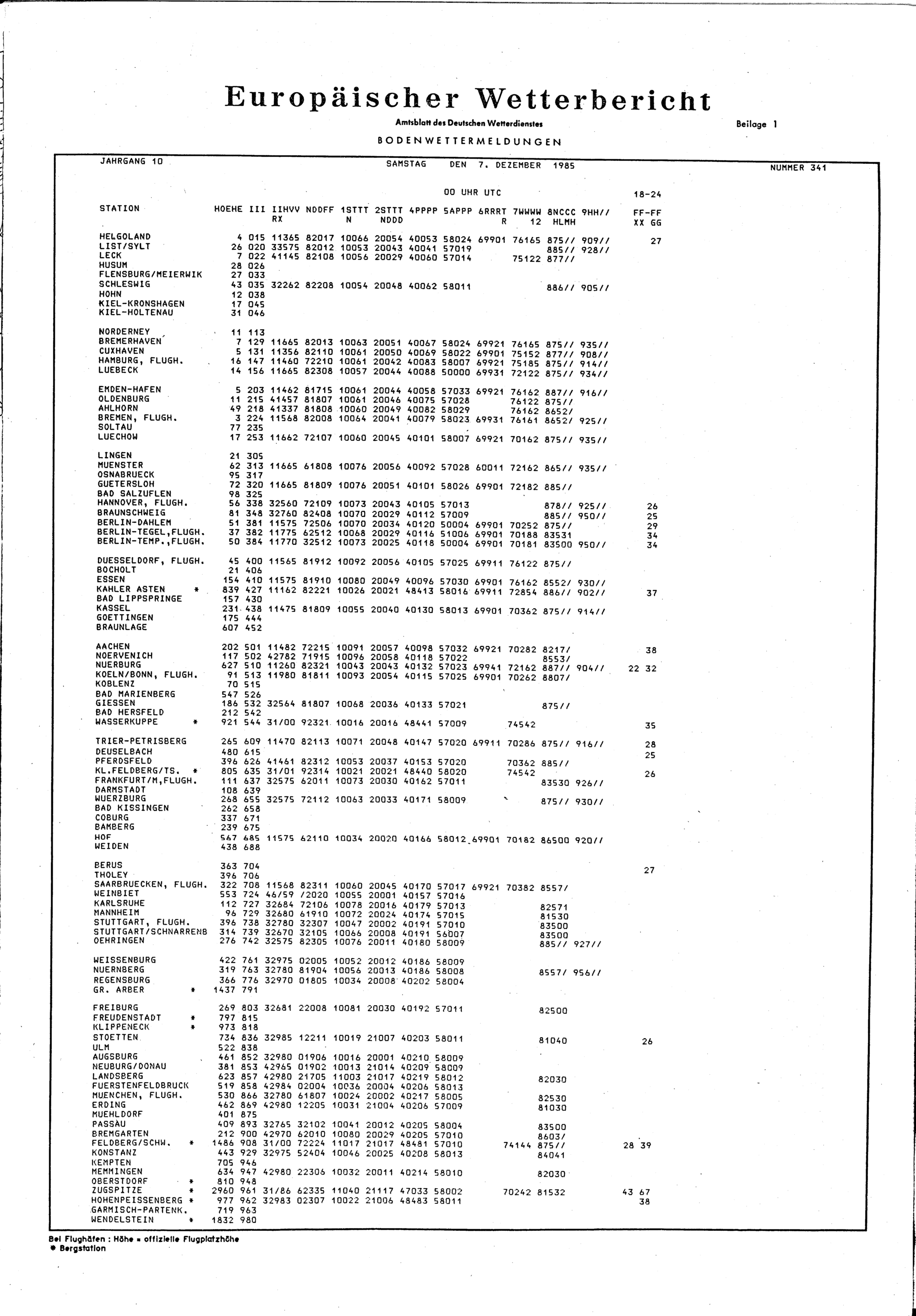 Europäischer Wetterbericht. Beilage 1, Bodenwettermeldungen. 1976-1994