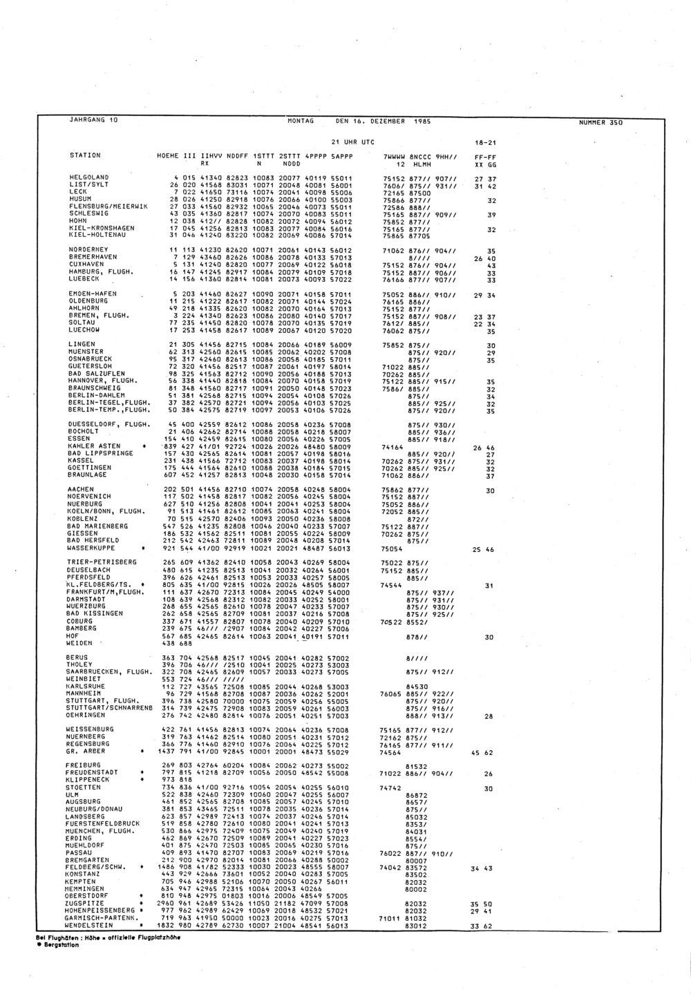 Europäischer Wetterbericht. Beilage 1, Bodenwettermeldungen. 1976-1994