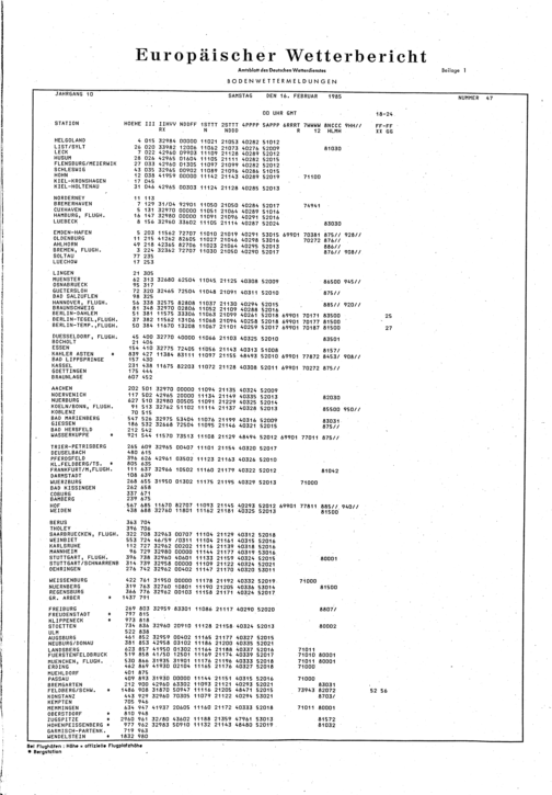 Europäischer Wetterbericht. Beilage 1, Bodenwettermeldungen. 1976-1994