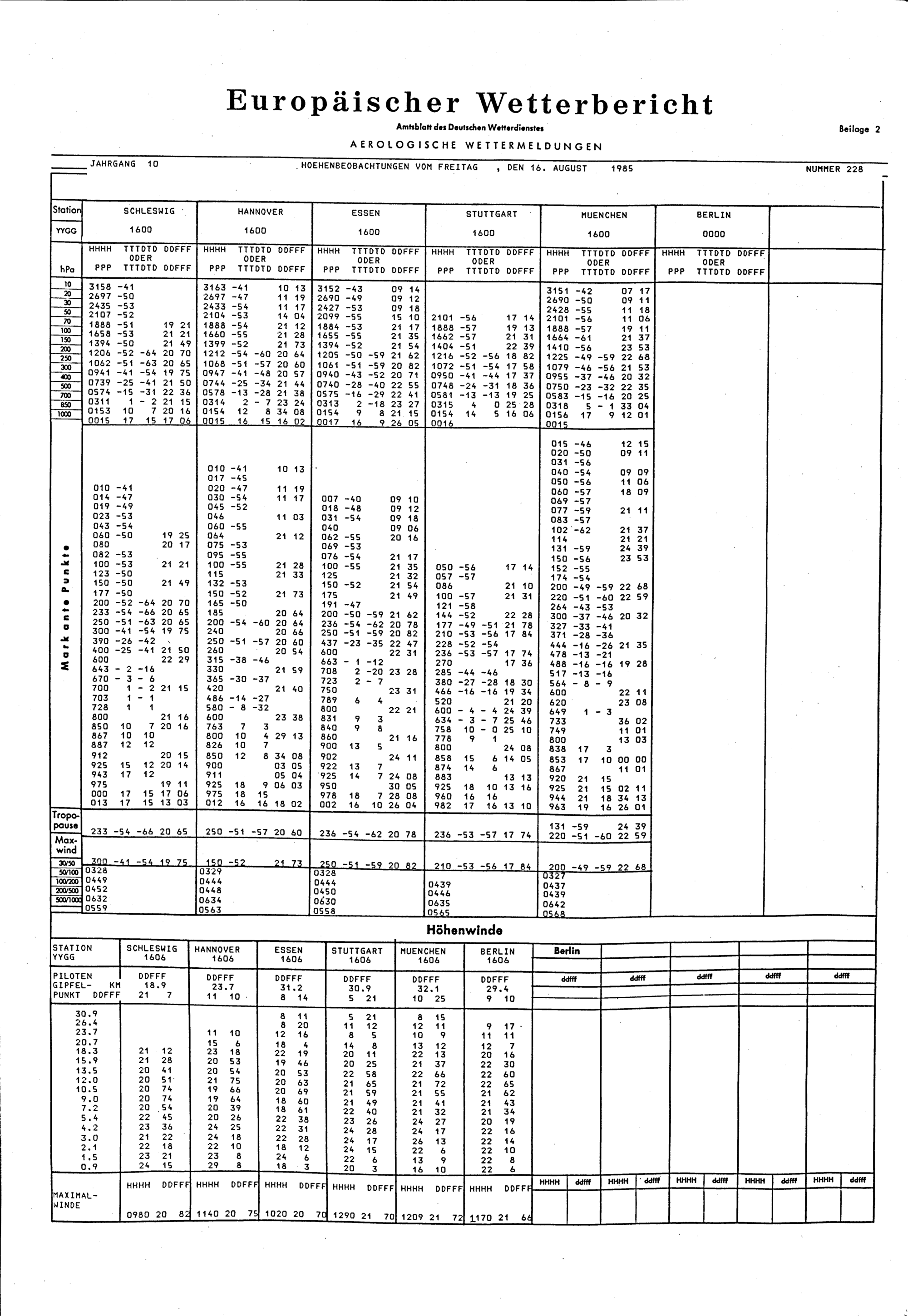 Europäischer Wetterbericht. Beilage 1, Bodenwettermeldungen. 1976-1994