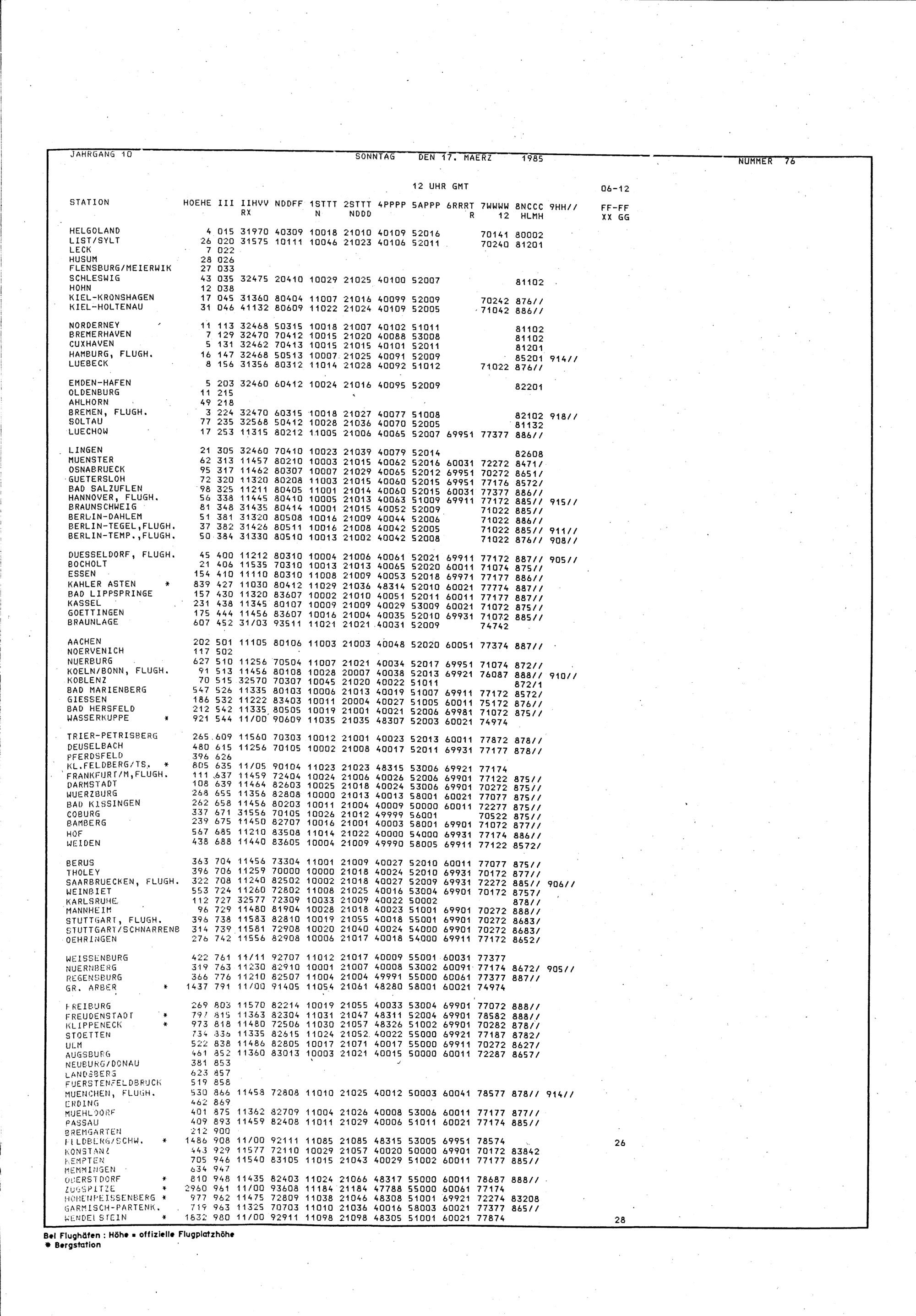 Europäischer Wetterbericht. Beilage 1, Bodenwettermeldungen. 1976-1994
