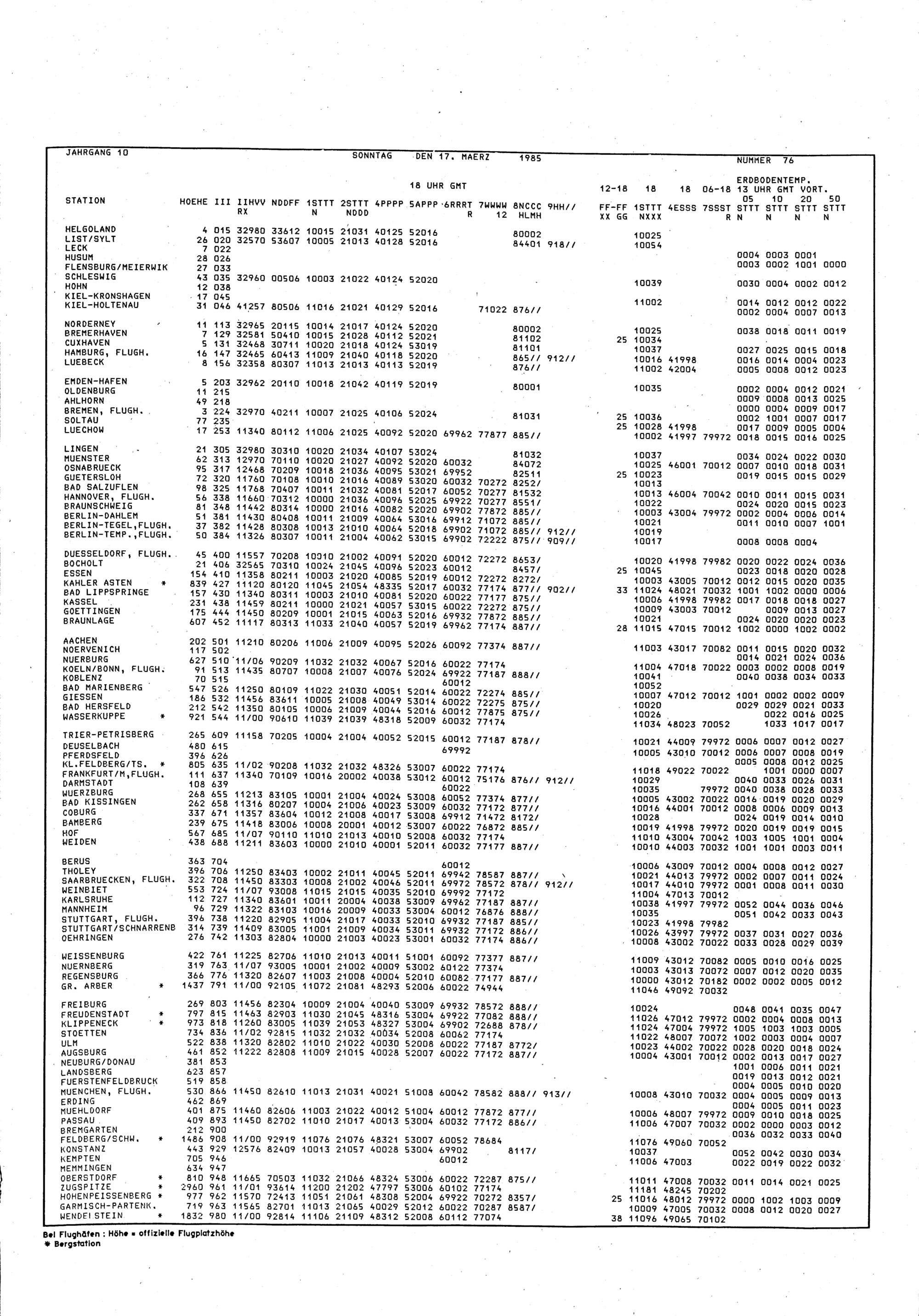 Europäischer Wetterbericht. Beilage 1, Bodenwettermeldungen. 1976-1994
