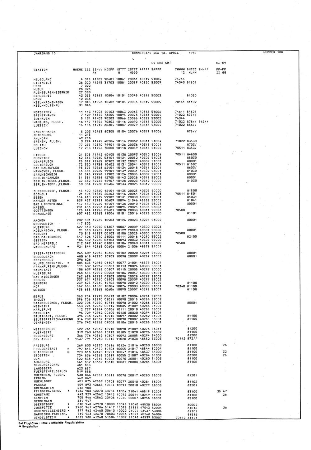 Europäischer Wetterbericht. Beilage 1, Bodenwettermeldungen. 1976-1994