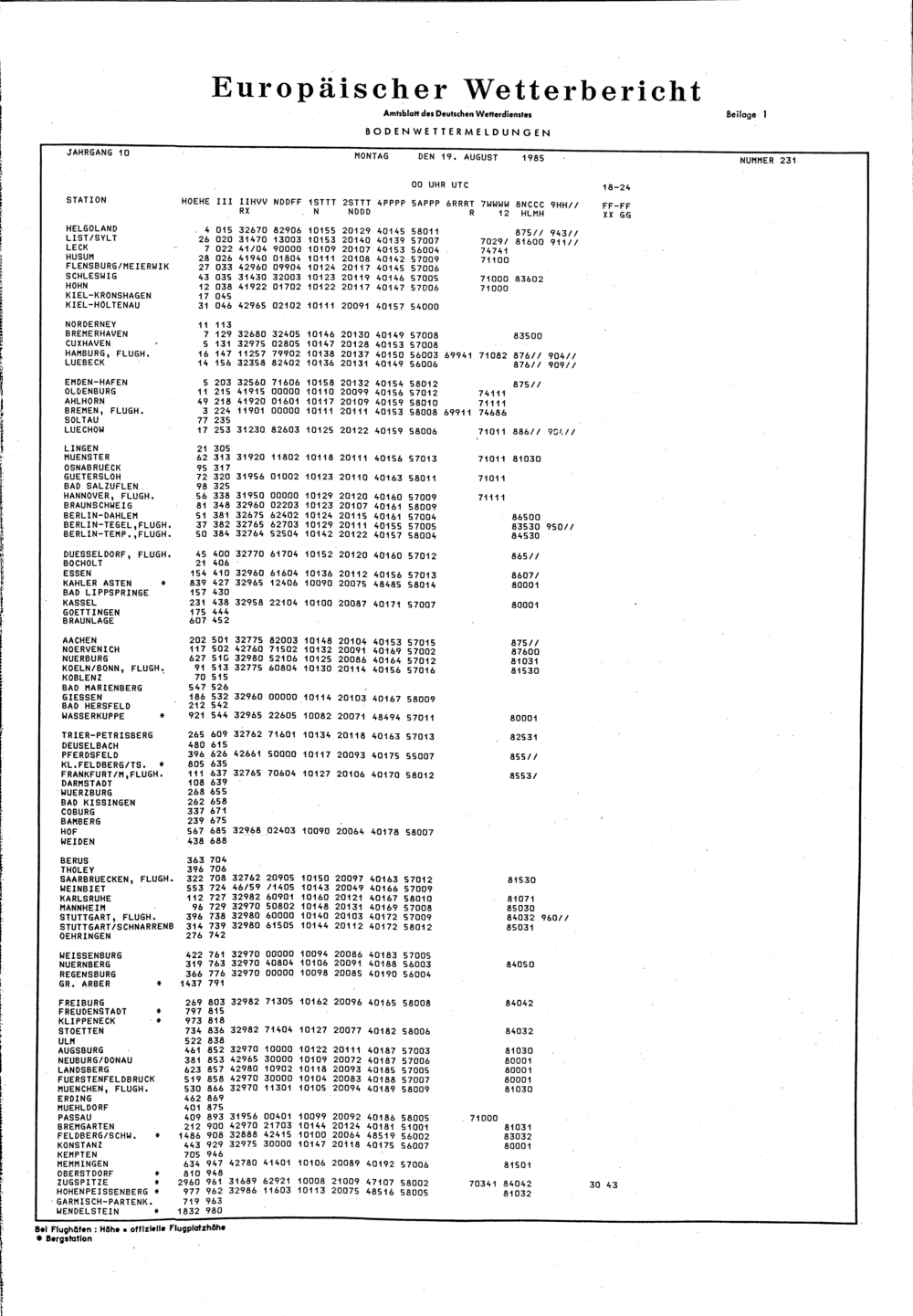 Europäischer Wetterbericht. Beilage 1, Bodenwettermeldungen. 1976-1994
