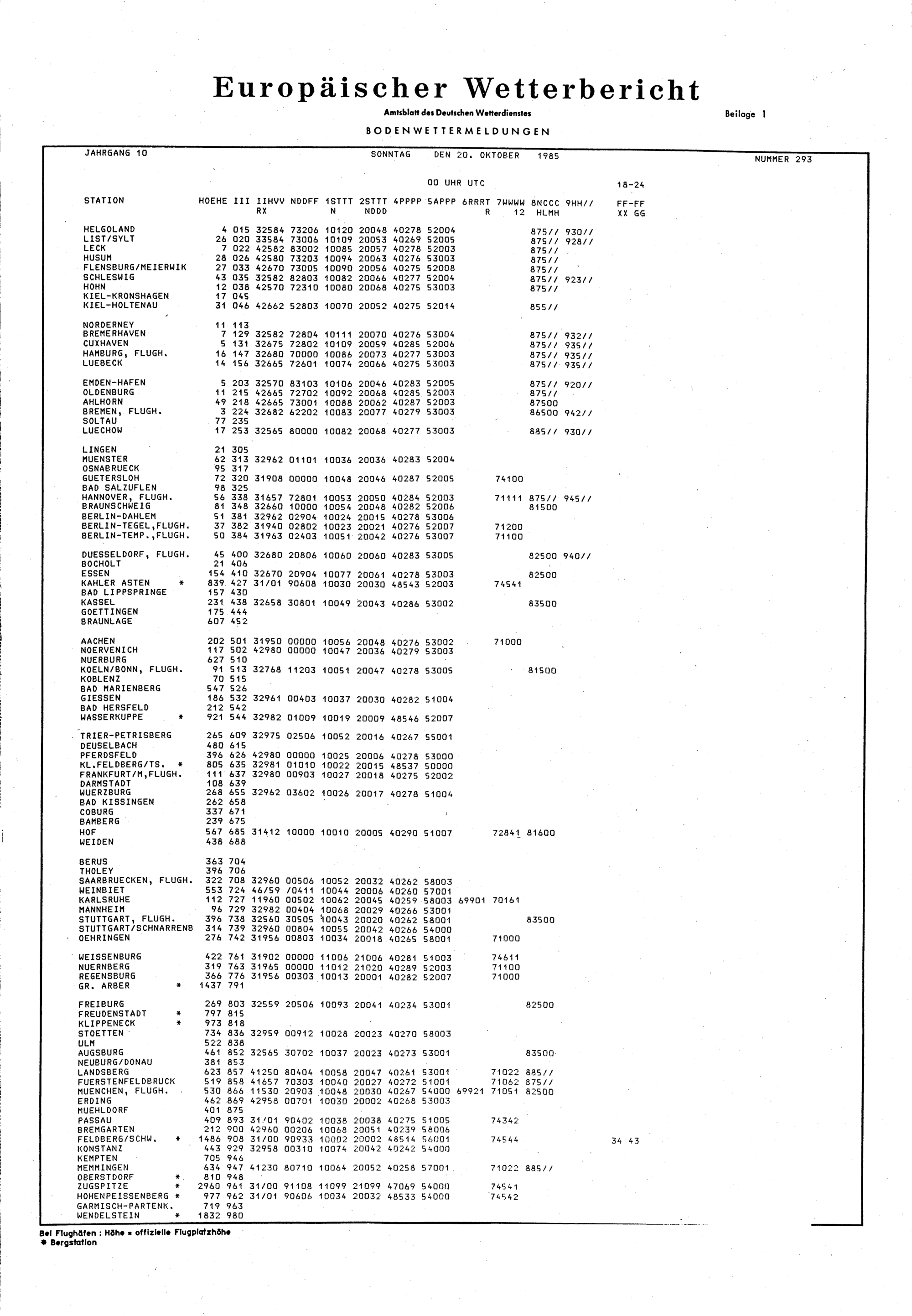 Europäischer Wetterbericht. Beilage 1, Bodenwettermeldungen. 1976-1994