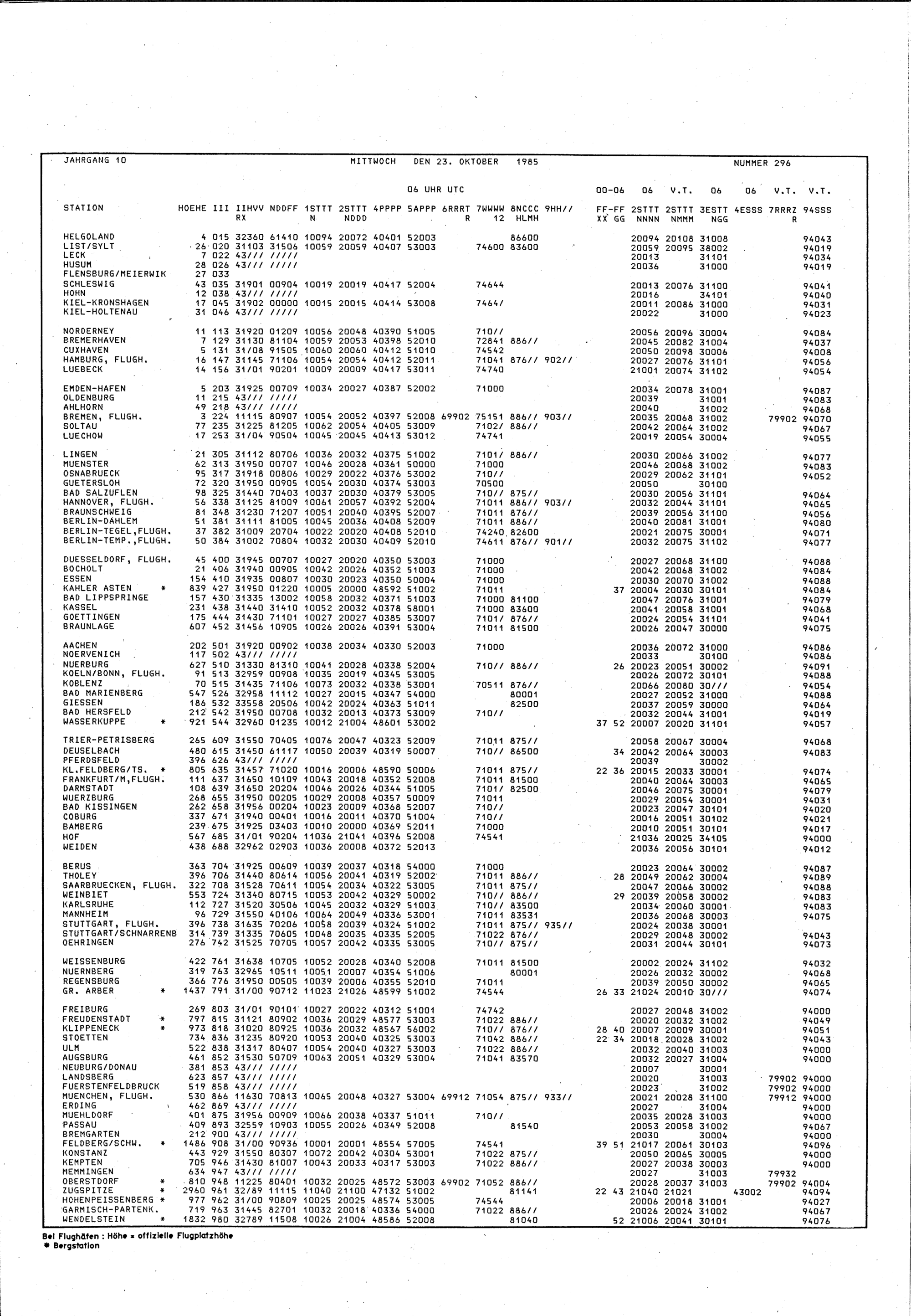 Europäischer Wetterbericht. Beilage 1, Bodenwettermeldungen. 1976-1994