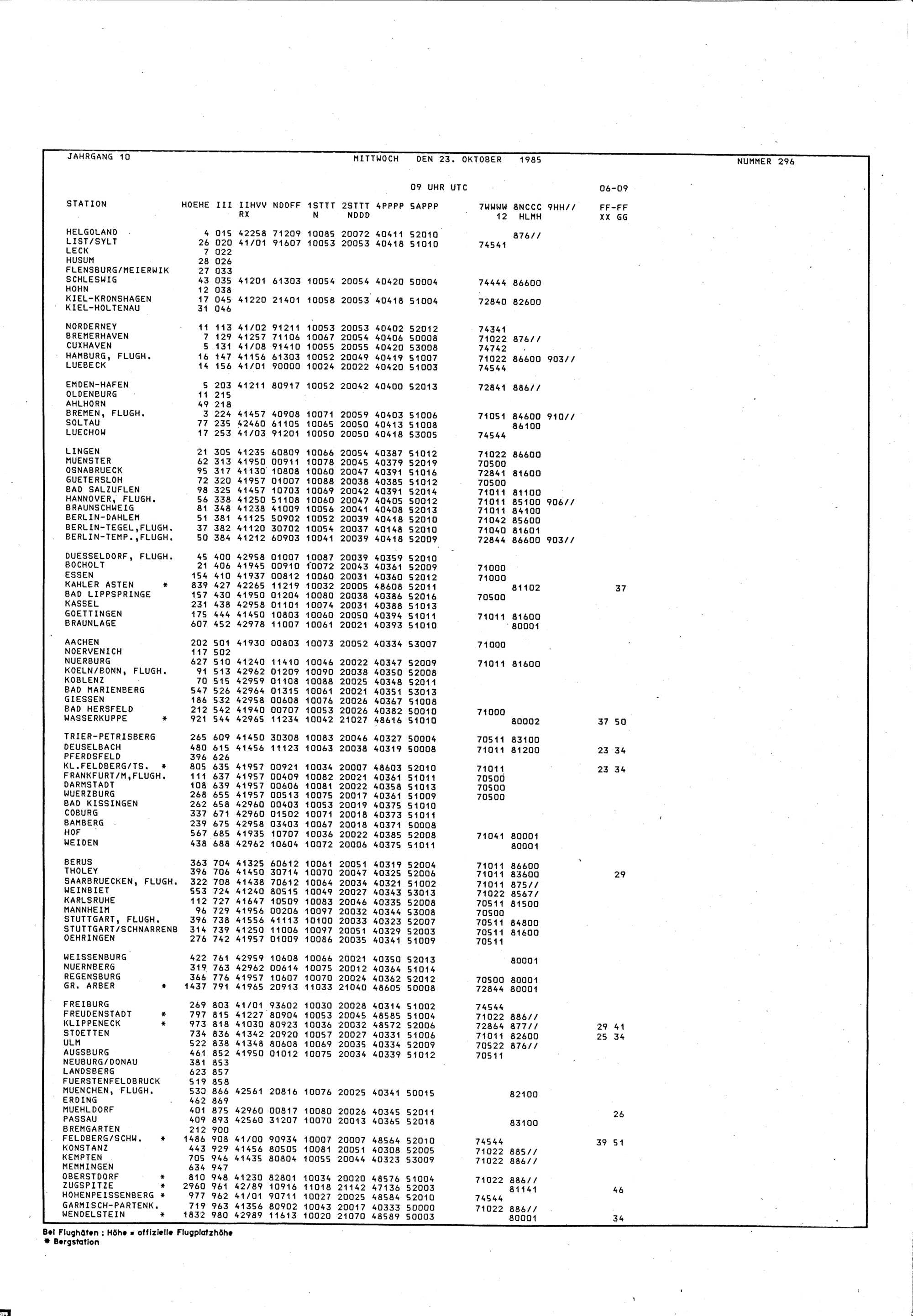 Europäischer Wetterbericht. Beilage 1, Bodenwettermeldungen. 1976-1994