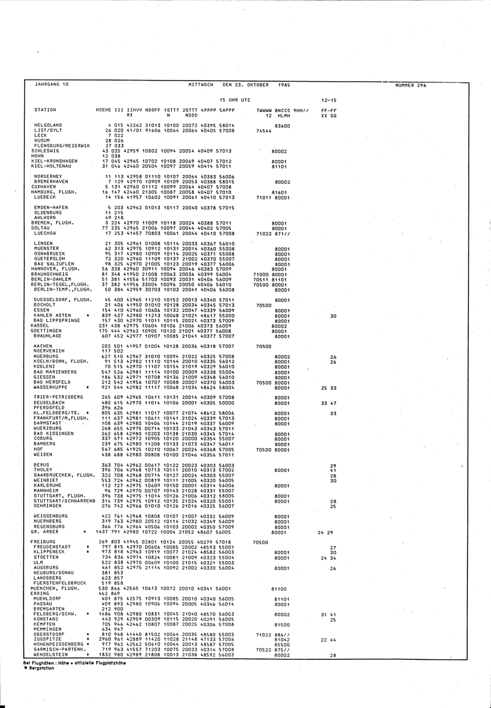 Europäischer Wetterbericht. Beilage 1, Bodenwettermeldungen. 1976-1994