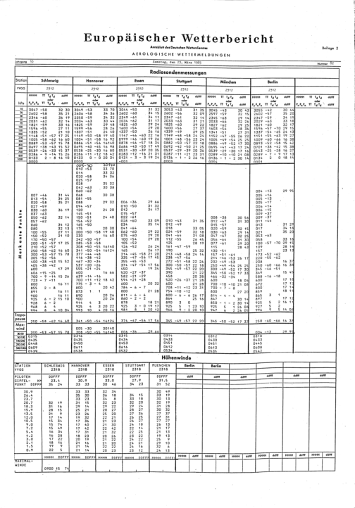 Europäischer Wetterbericht. Beilage 1, Bodenwettermeldungen. 1976-1994