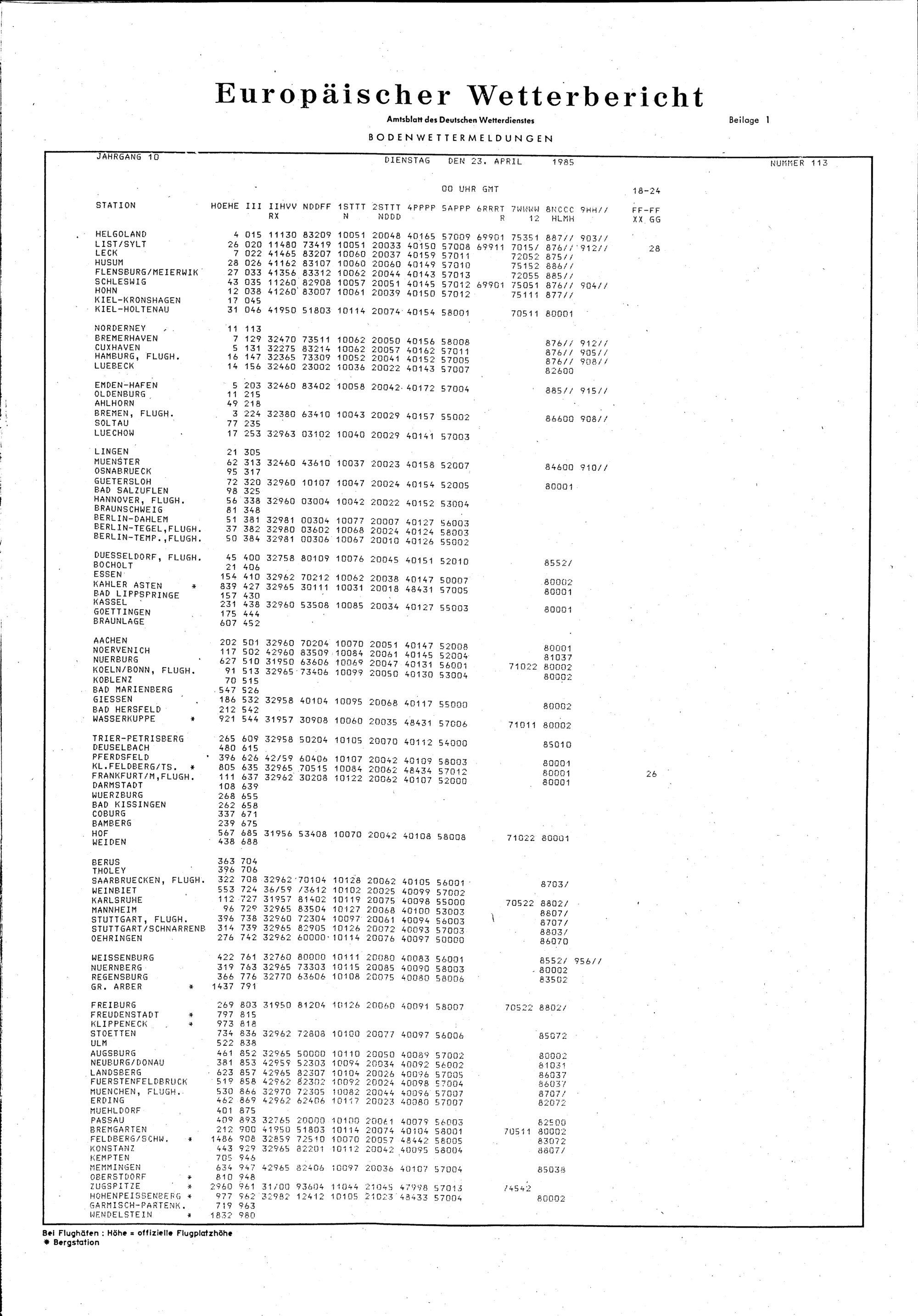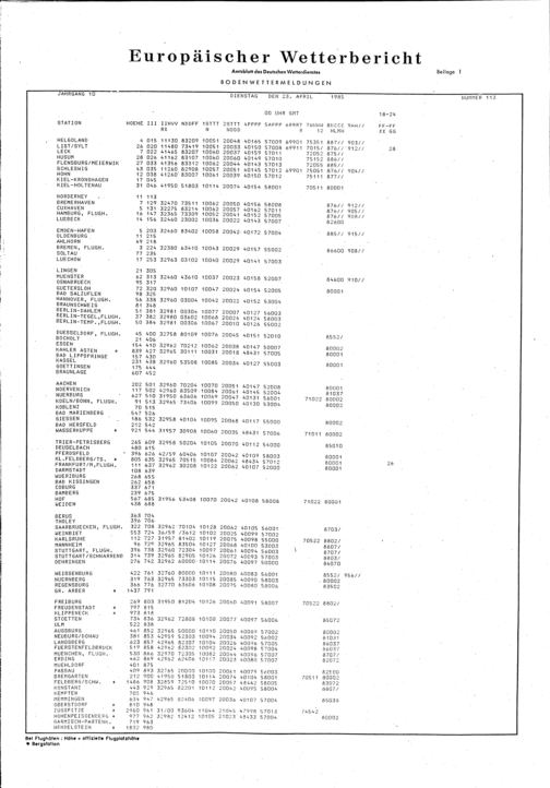 Europäischer Wetterbericht. Beilage 1, Bodenwettermeldungen. 1976-1994