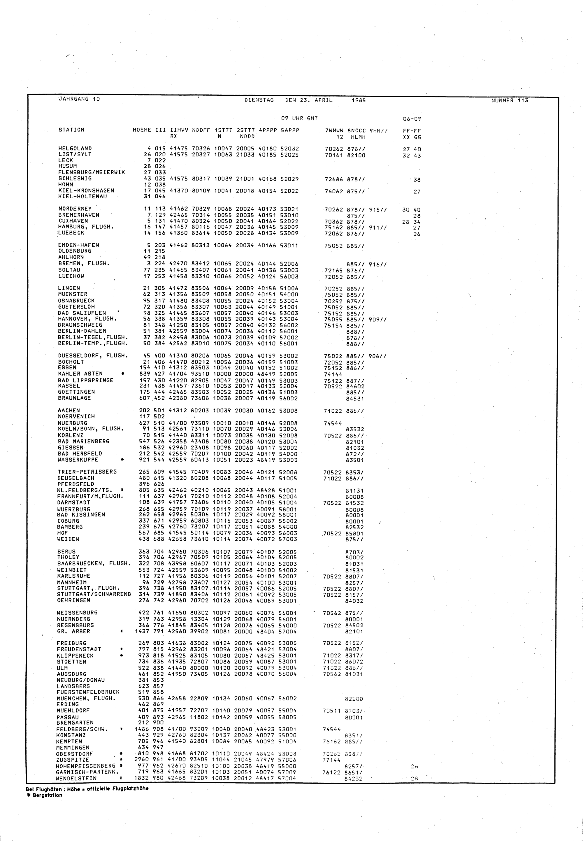 Europäischer Wetterbericht. Beilage 1, Bodenwettermeldungen. 1976-1994