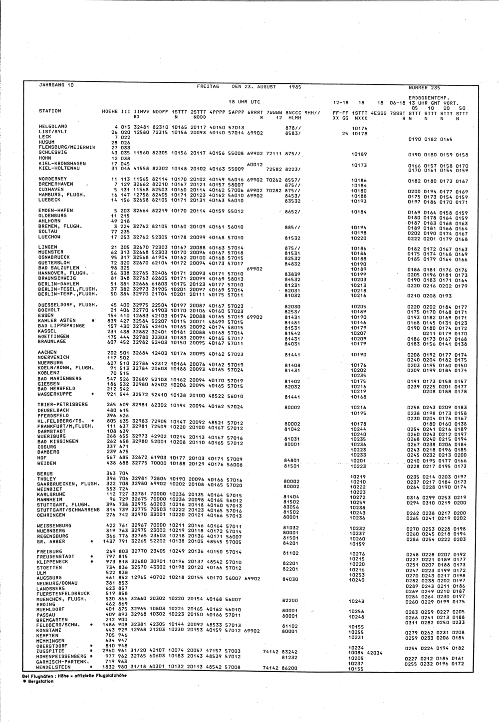 Europäischer Wetterbericht. Beilage 1, Bodenwettermeldungen. 1976-1994