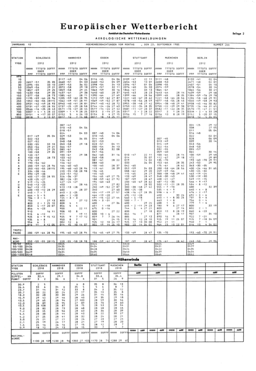 Europäischer Wetterbericht. Beilage 2, Aerologische Wettermeldungen. 1976-1994